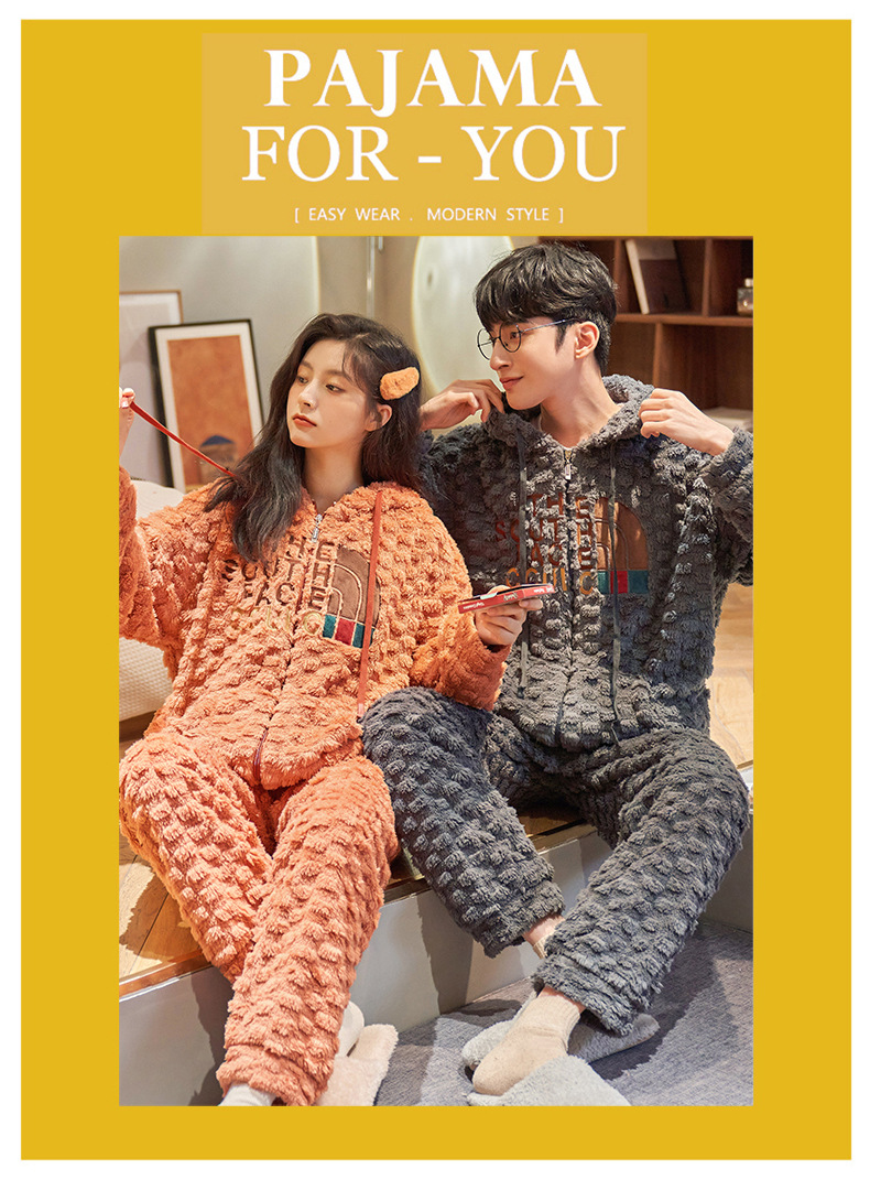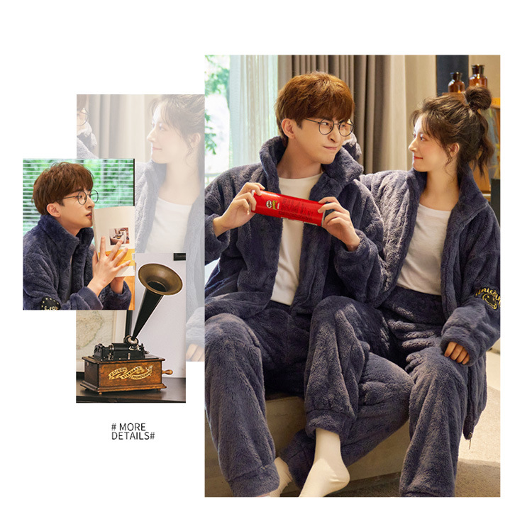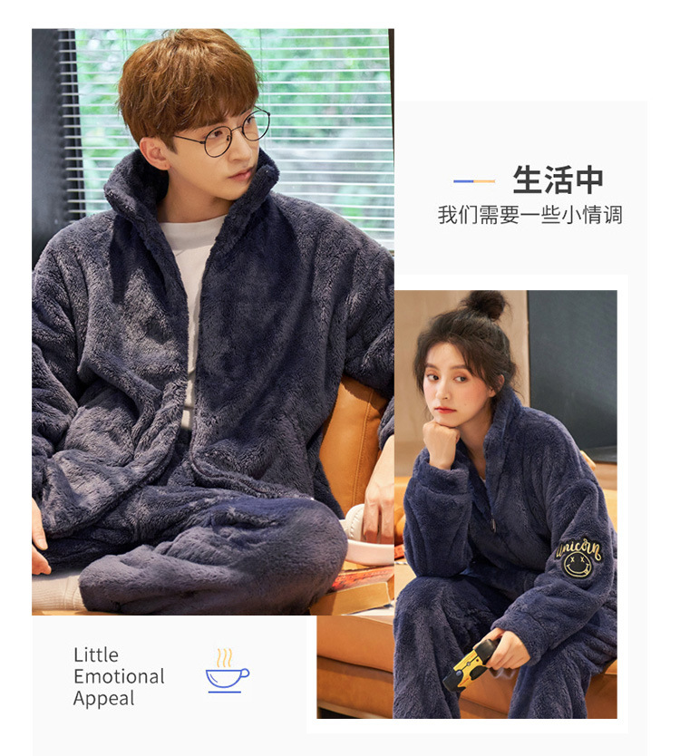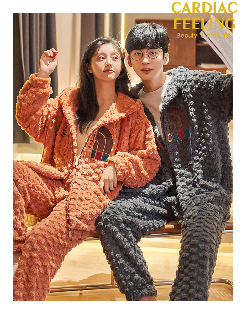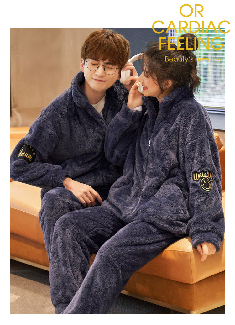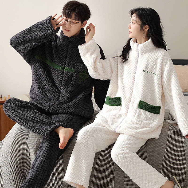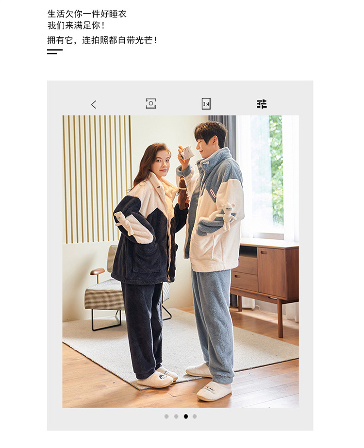 커플 잠옷 겨울 산호 양털 두꺼운 만화 따뜻한 기모 청소년 남성 홈 옷 여성 플란넬 겨울스토어 가기