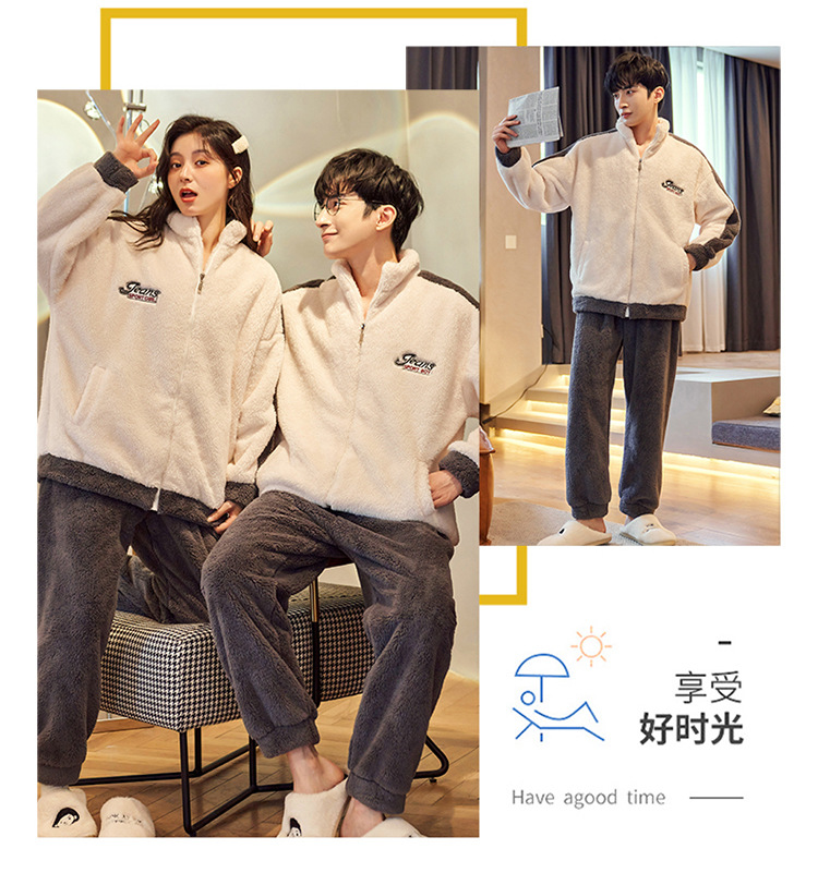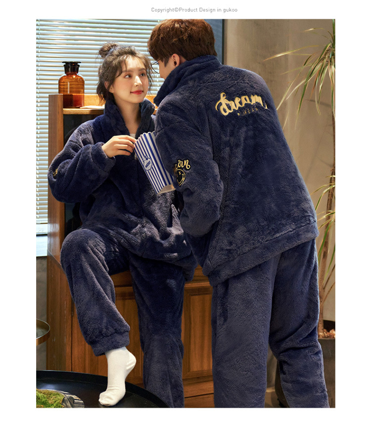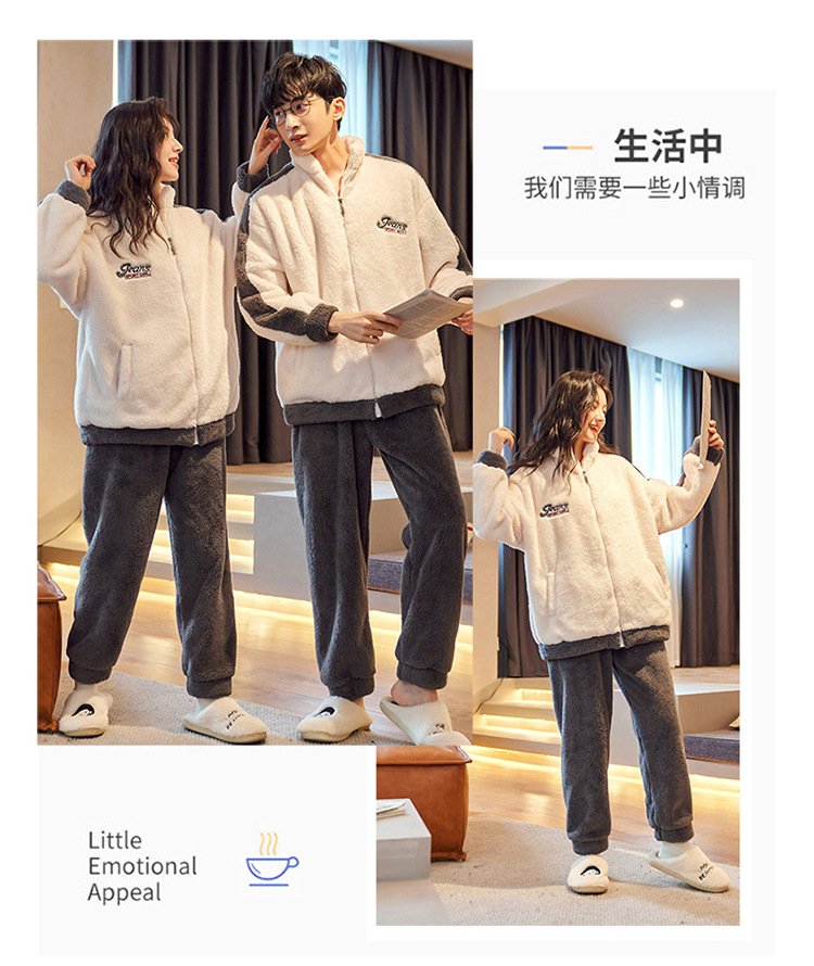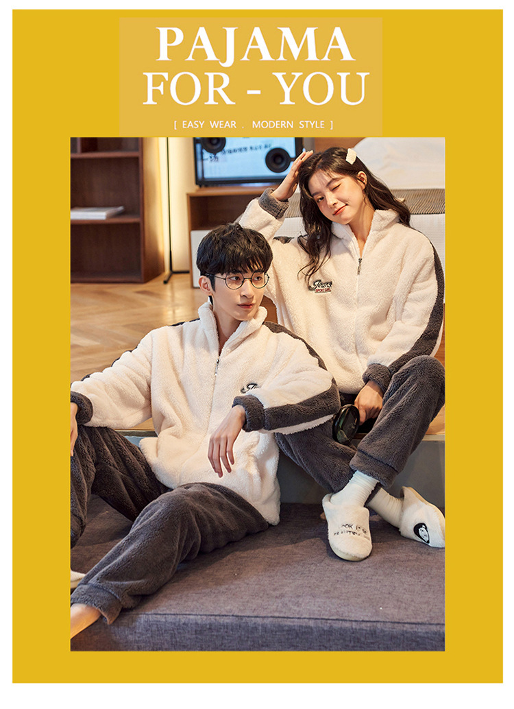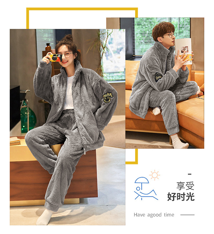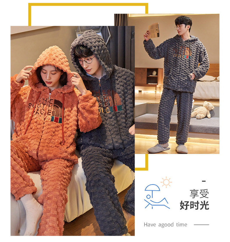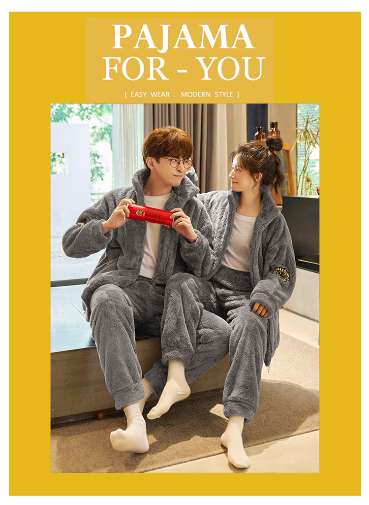 커플 잠옷 겨울 산호 양털 두꺼운 만화 따뜻한 기모 청소년 남성 홈 옷 여성 플란넬 겨울스토어 가기
