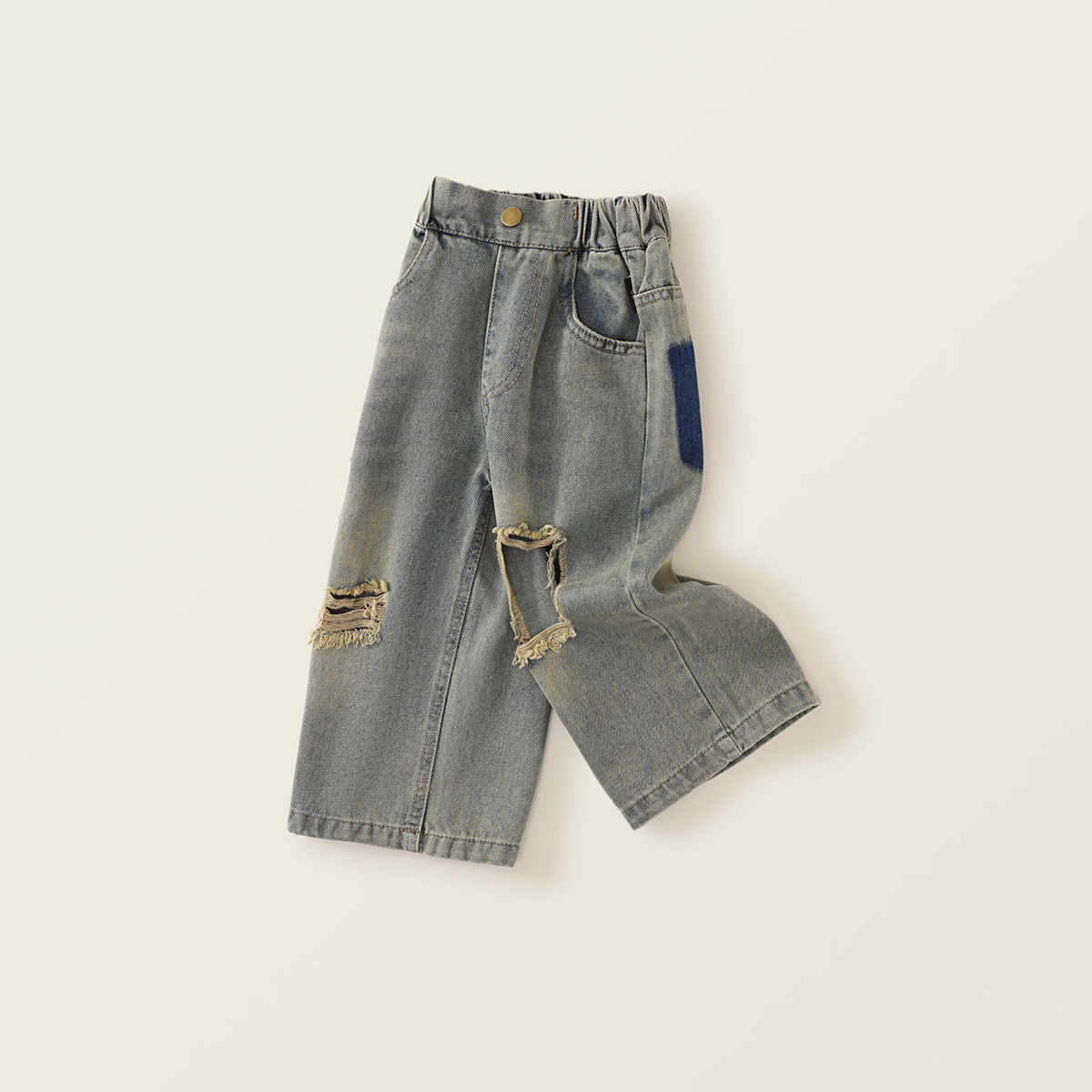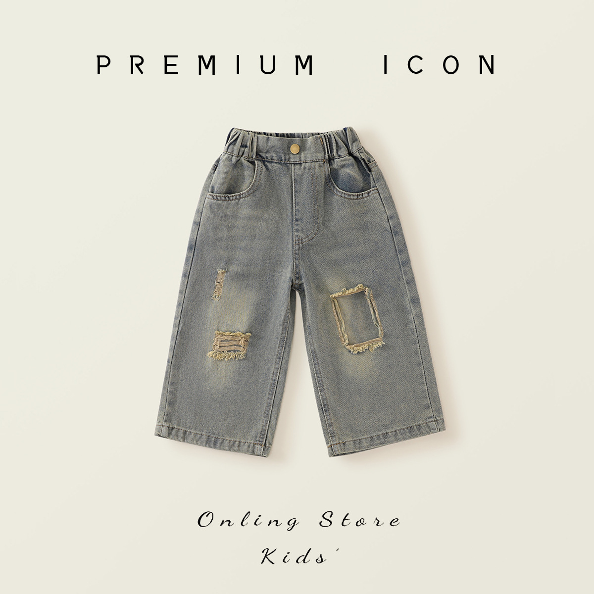 어린이 찢어진 청바지 2025 봄과 여름 새로운 소녀 한국 복고풍 유행 스트레이트 바지 머리카락 세대스토어 가기
