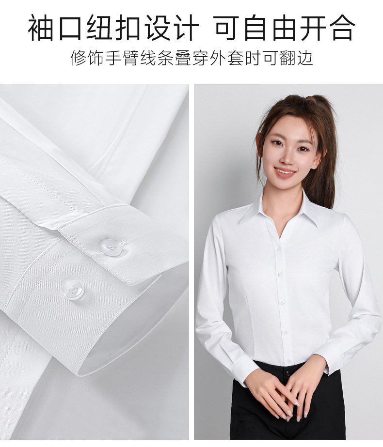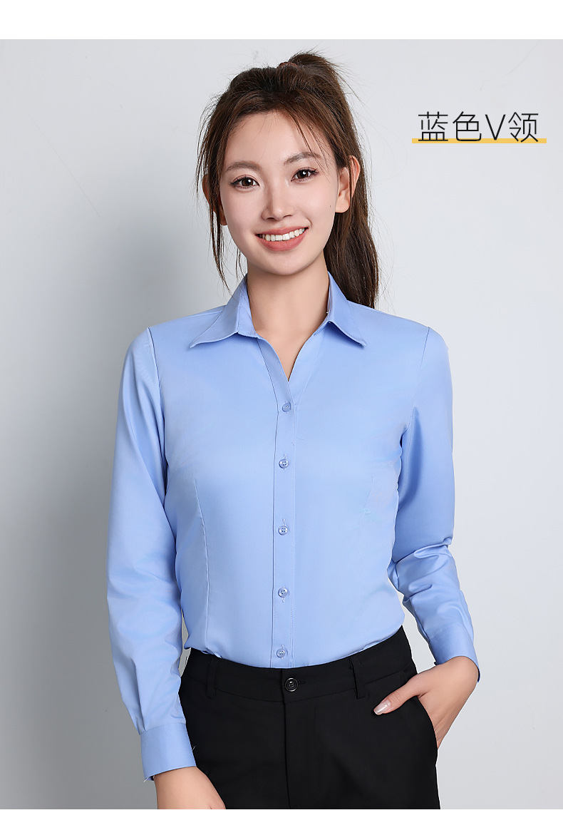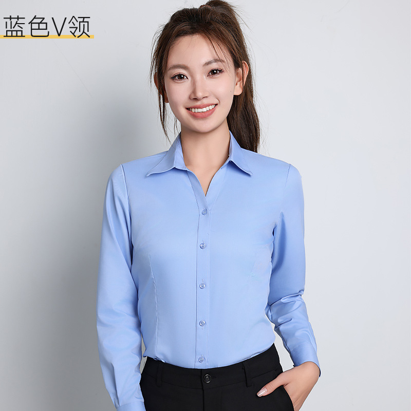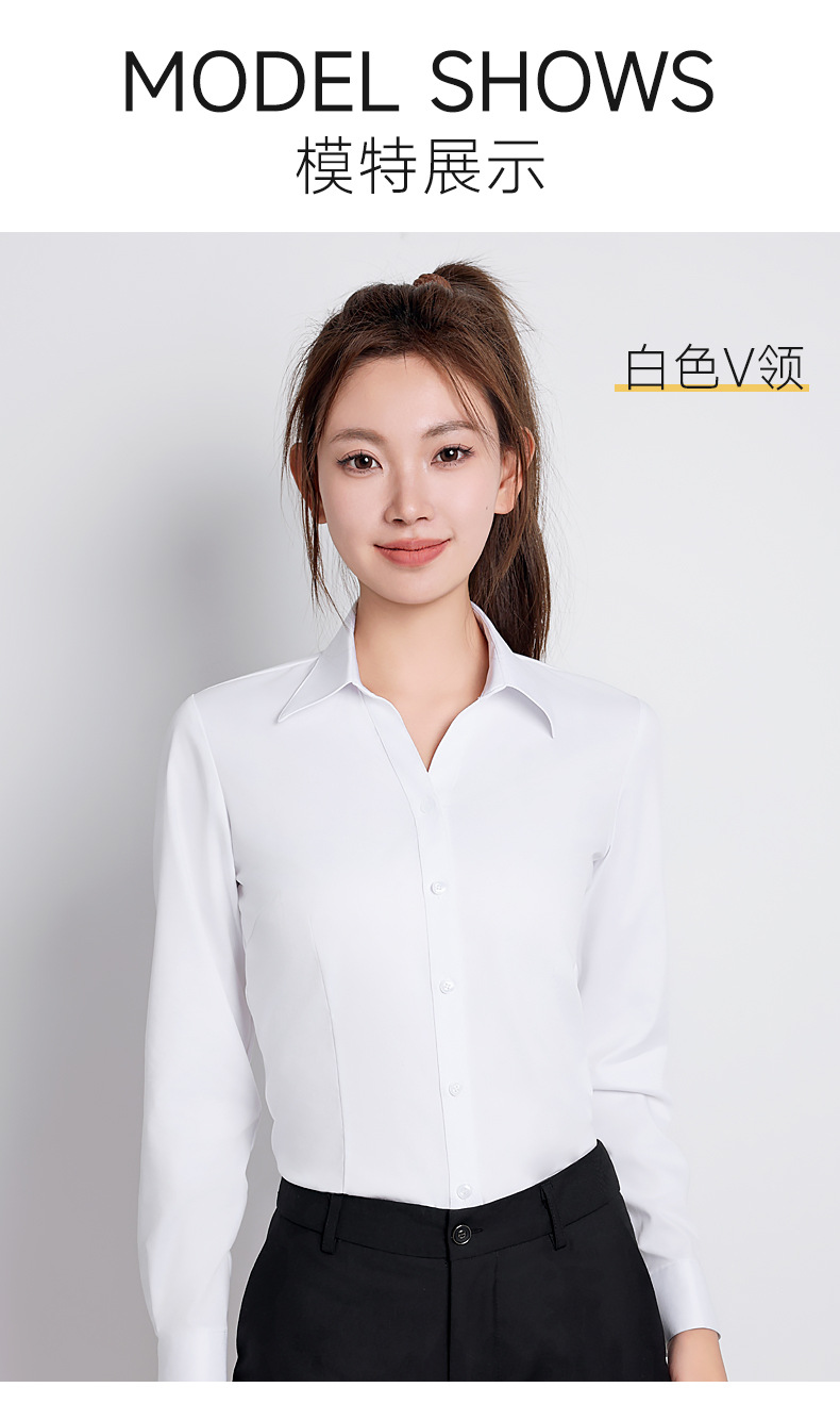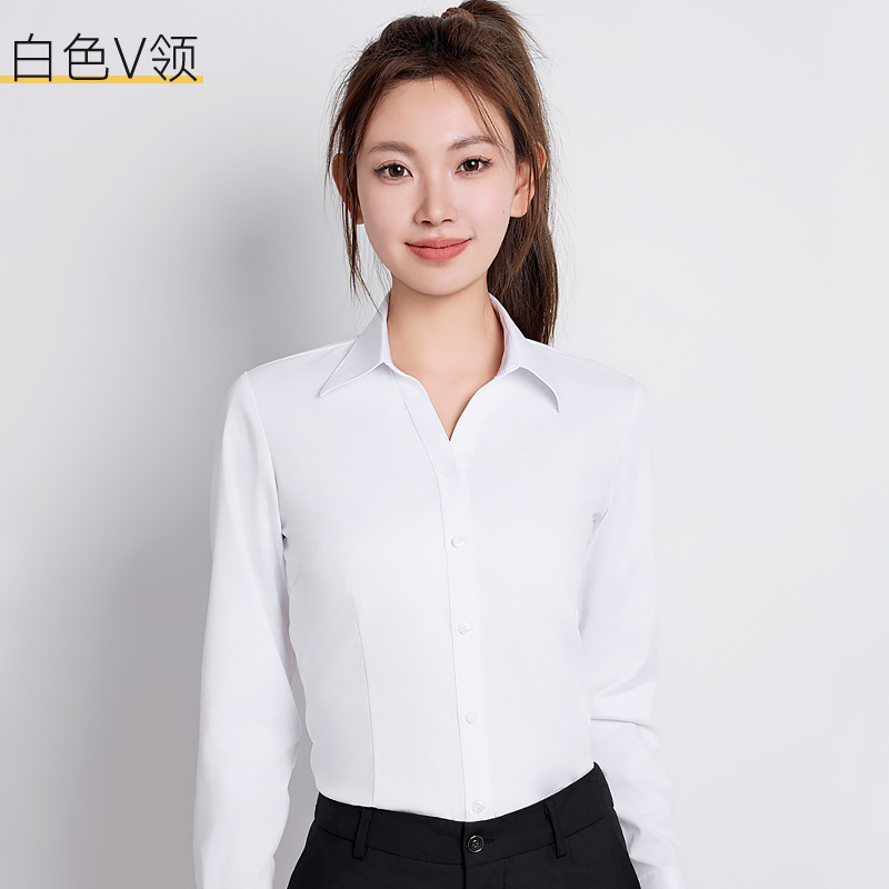 긴팔 셔츠 여성용 전문 요새 새로운 슬림 핏 작업복 인터뷰 화이트 셔츠 V-넥 주름 방지 슬림 핏 작업복스토어 가기