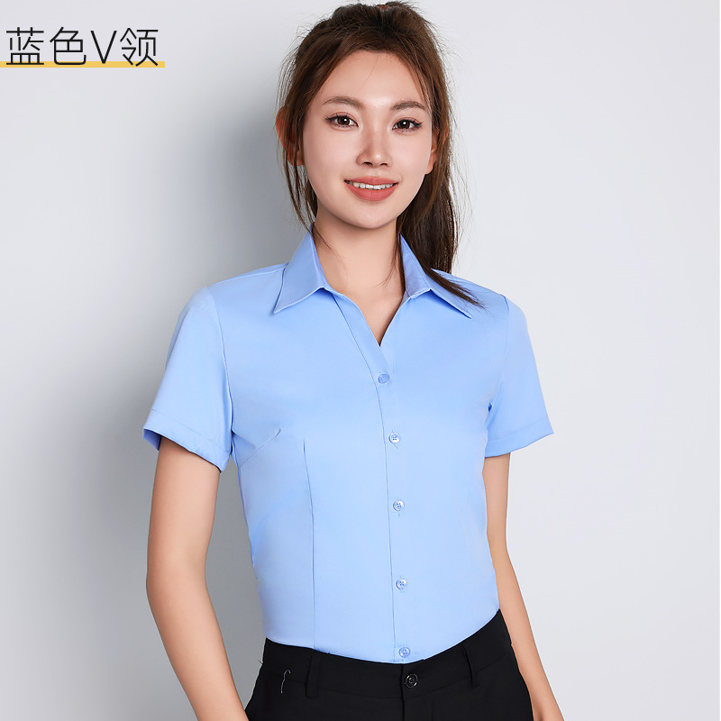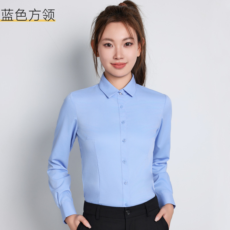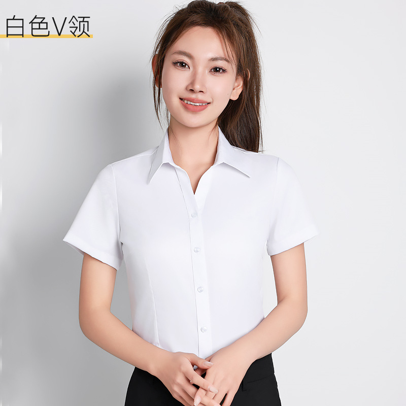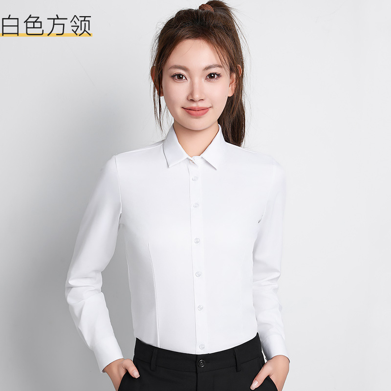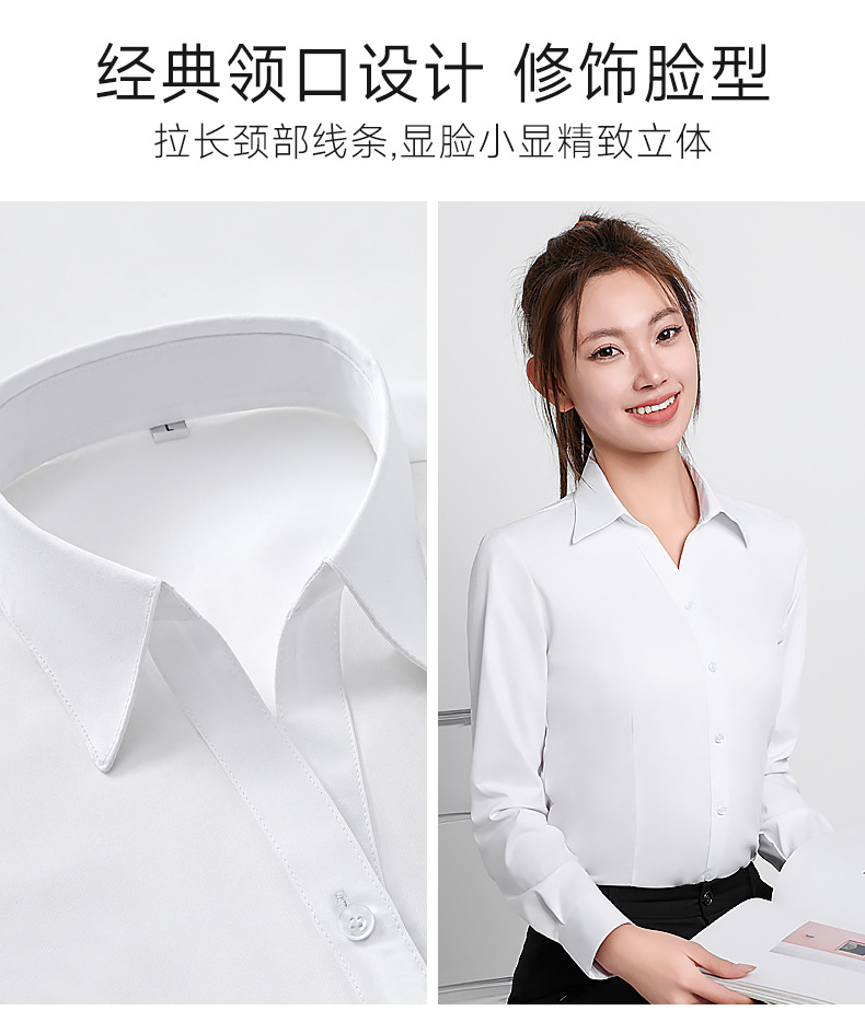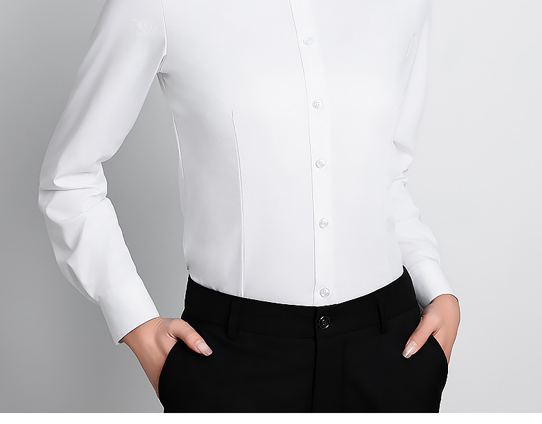 긴팔 셔츠 여성용 전문 요새 새로운 슬림 핏 작업복 인터뷰 화이트 셔츠 V-넥 주름 방지 슬림 핏 작업복스토어 가기