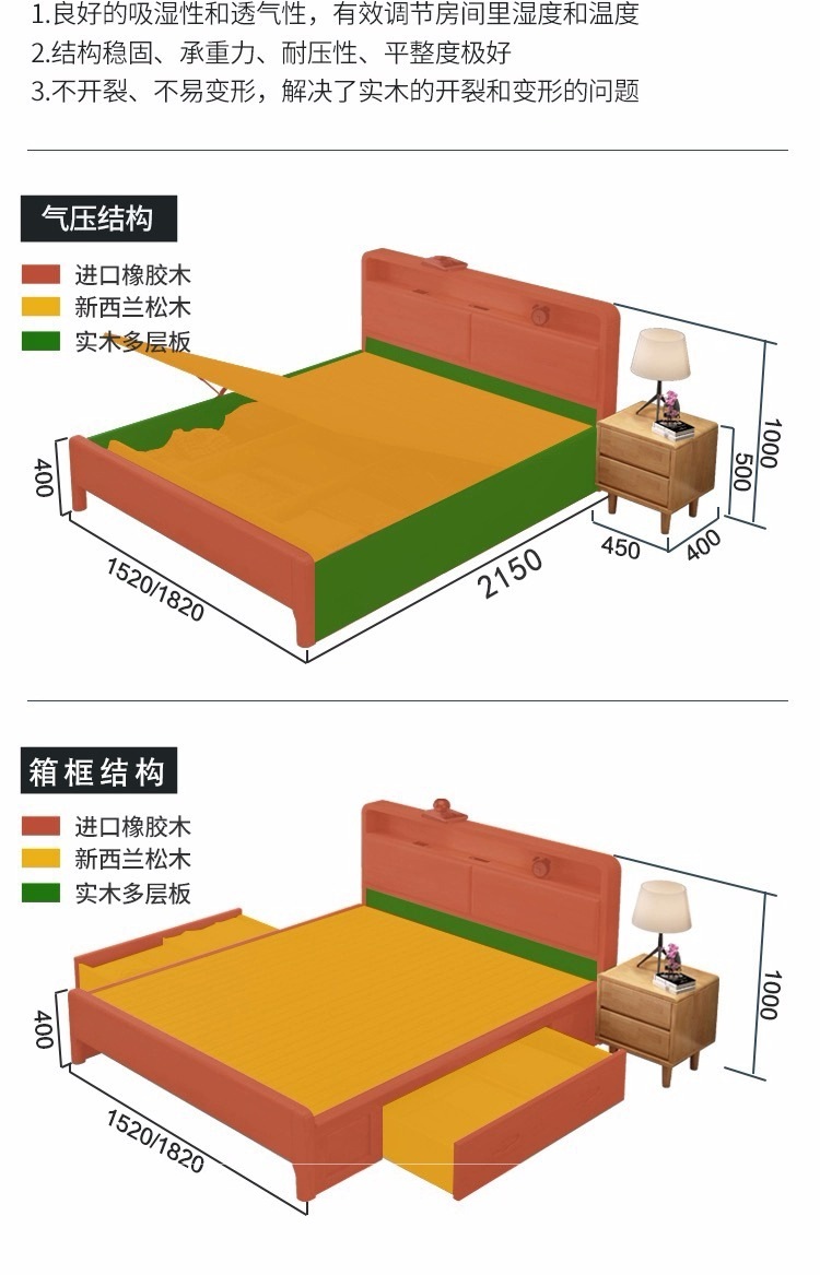 • 침대+침대협탁*1+5D 라텍스 매트리스[매트리스 5개]