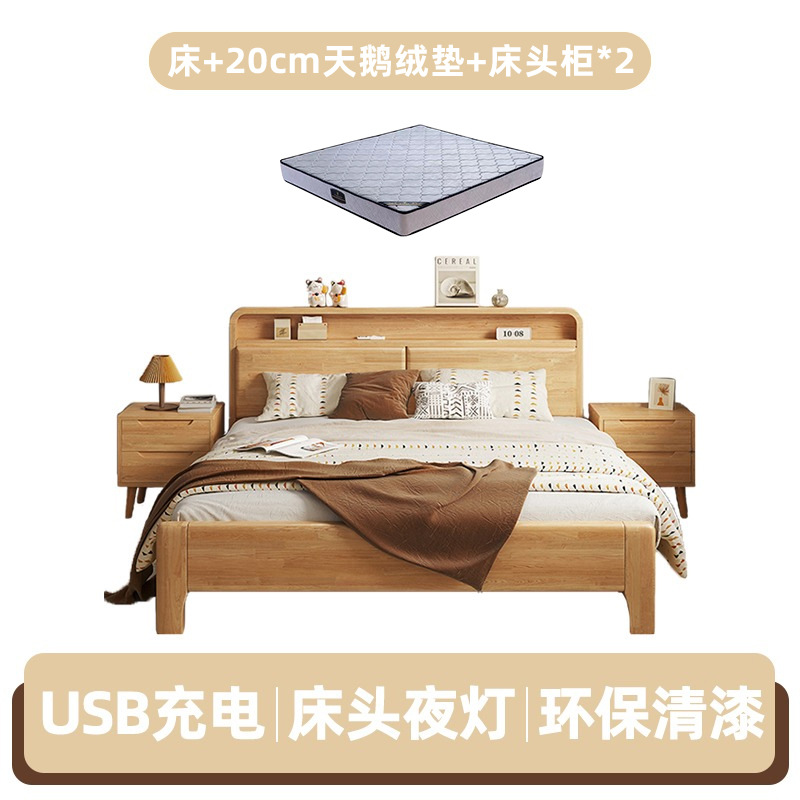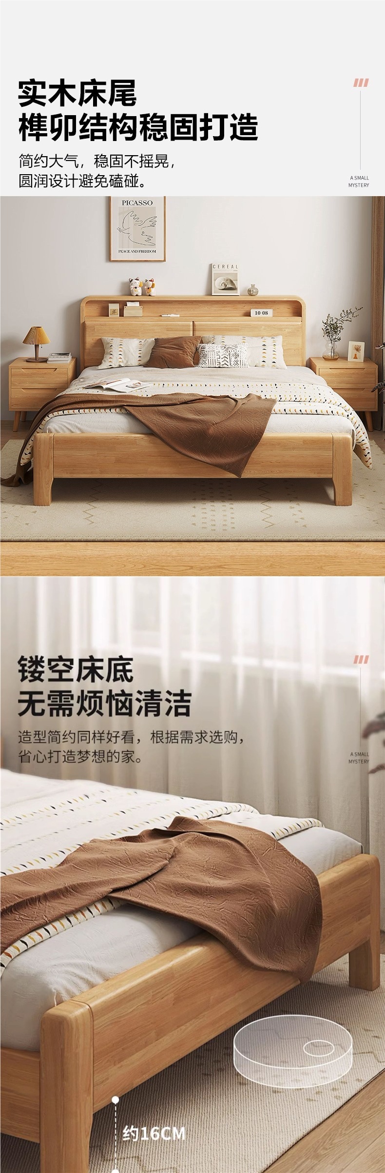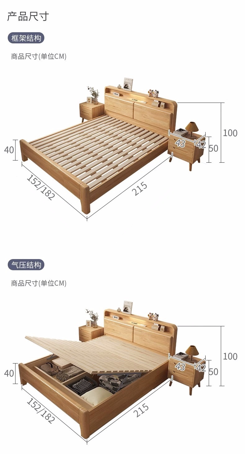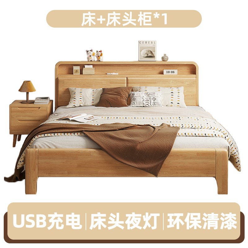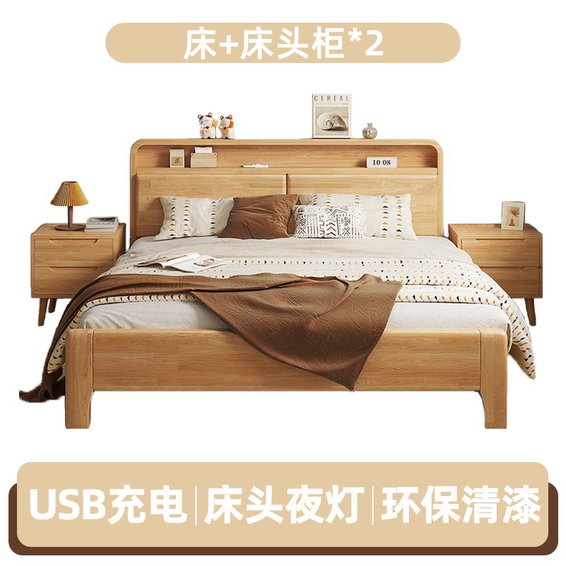 북유럽 순수한 단단한 나무 침대 모든 단단한 나무 현대 간단한 1.8 m 더블 침대 가구 1.5 m 마스터 침실 보관