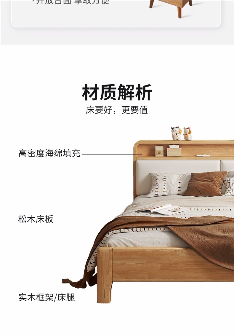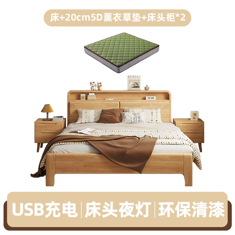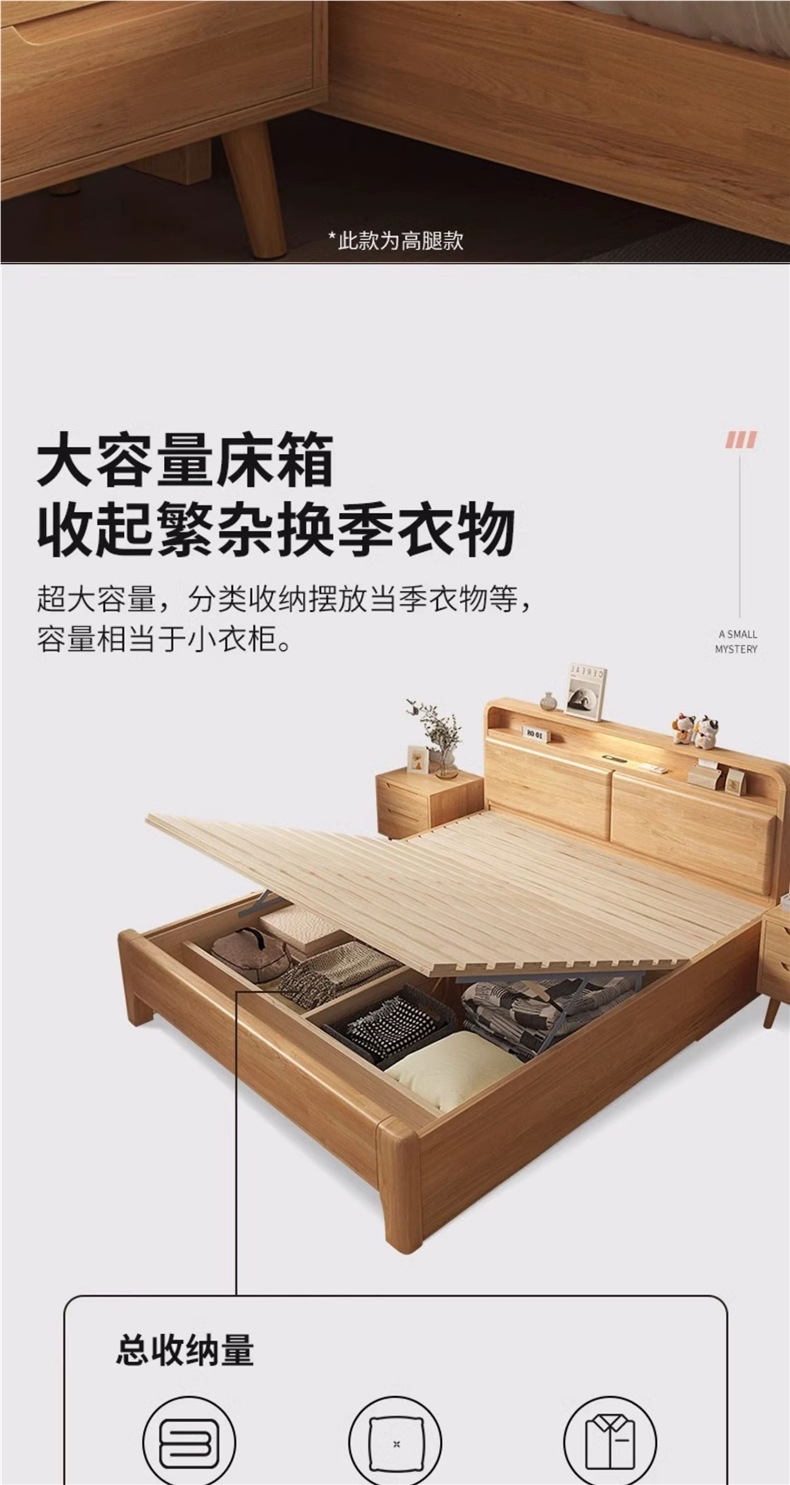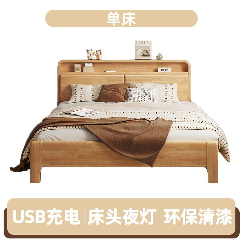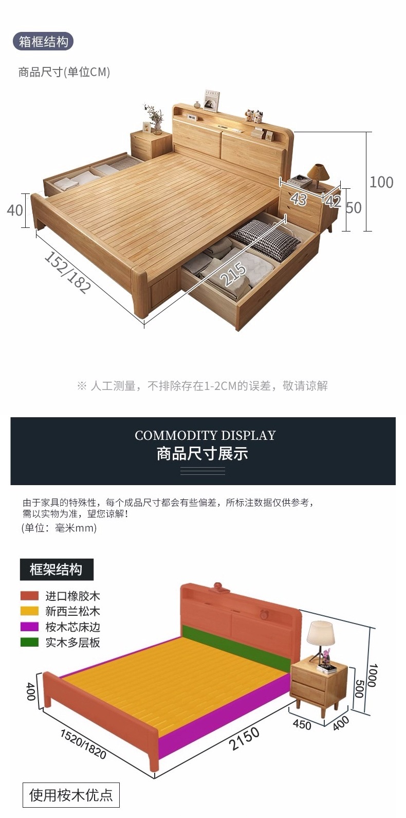 북유럽 순수한 단단한 나무 침대 모든 단단한 나무 현대 간단한 1.8 m 더블 침대 가구 1.5 m 마스터 침실 보관