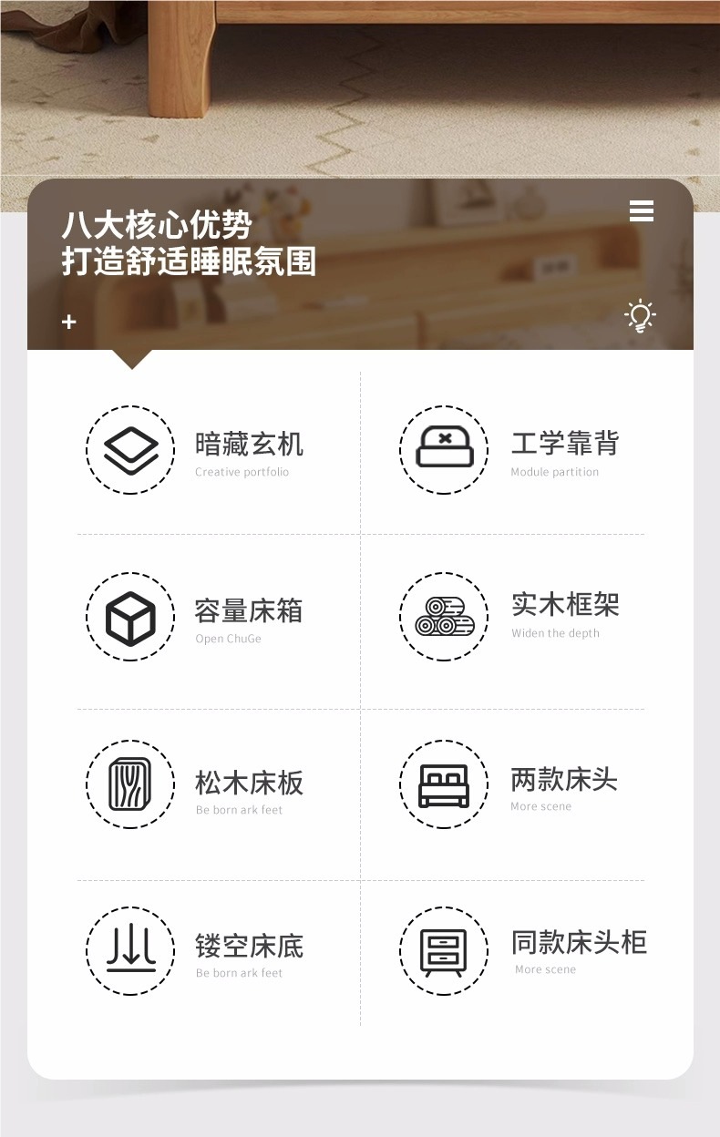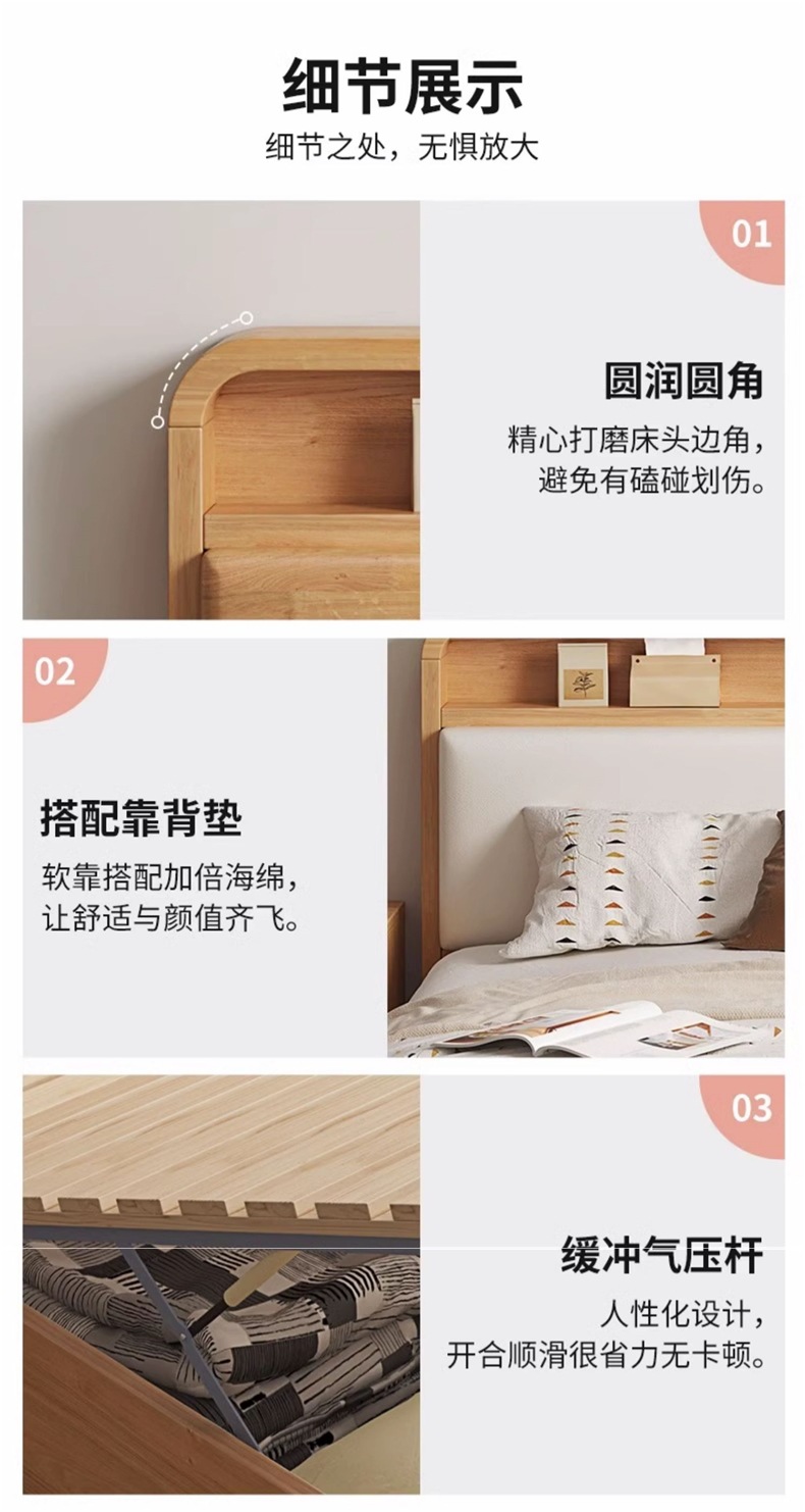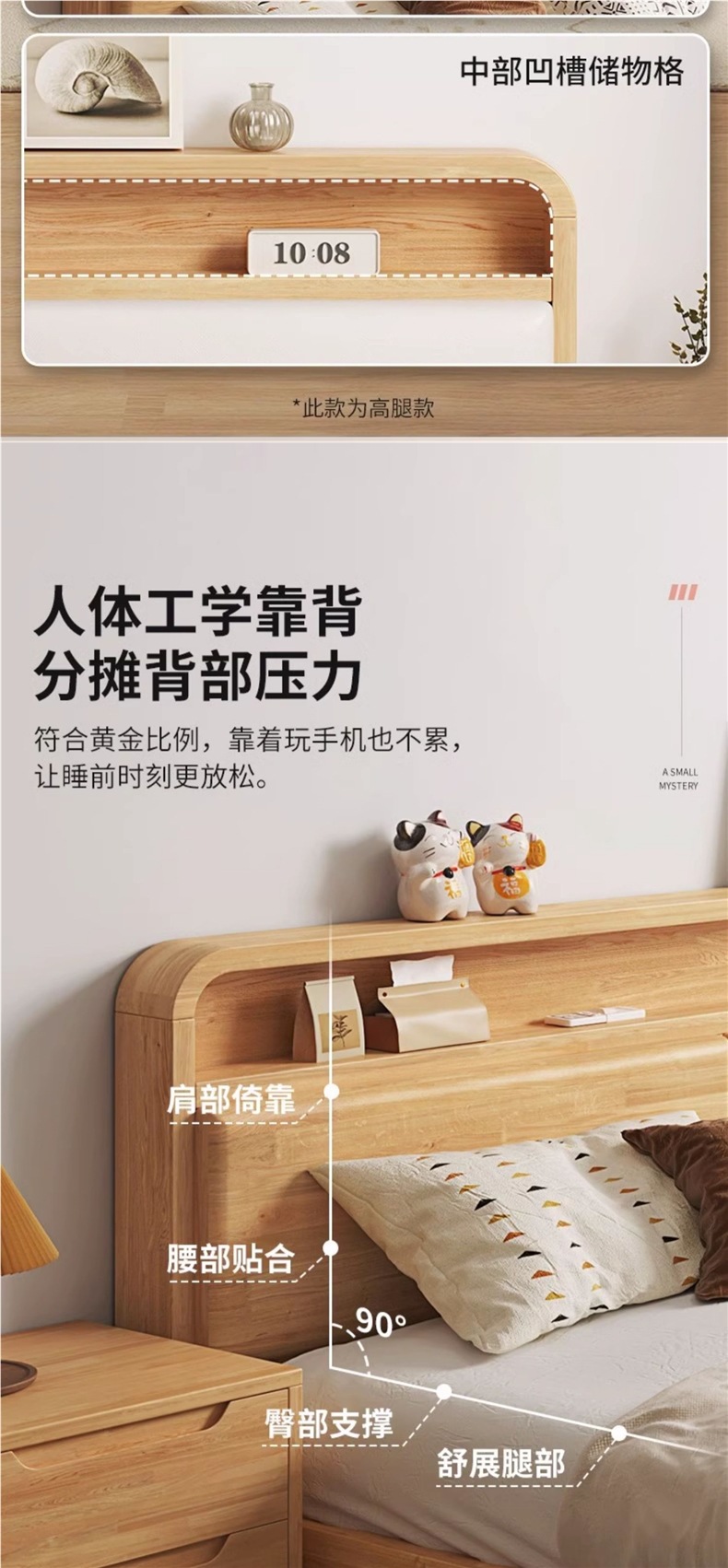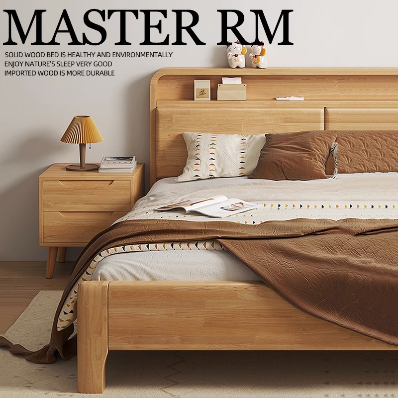 북유럽 순수한 단단한 나무 침대 모든 단단한 나무 현대 간단한 1.8 m 더블 침대 가구 1.5 m 마스터 침실 보관