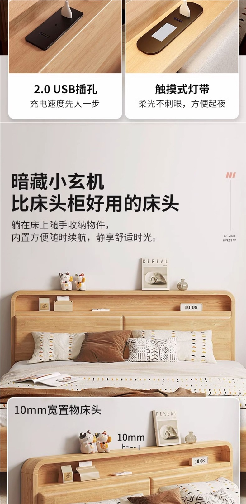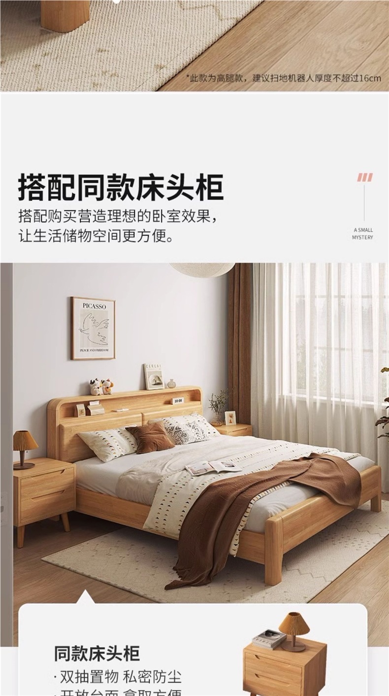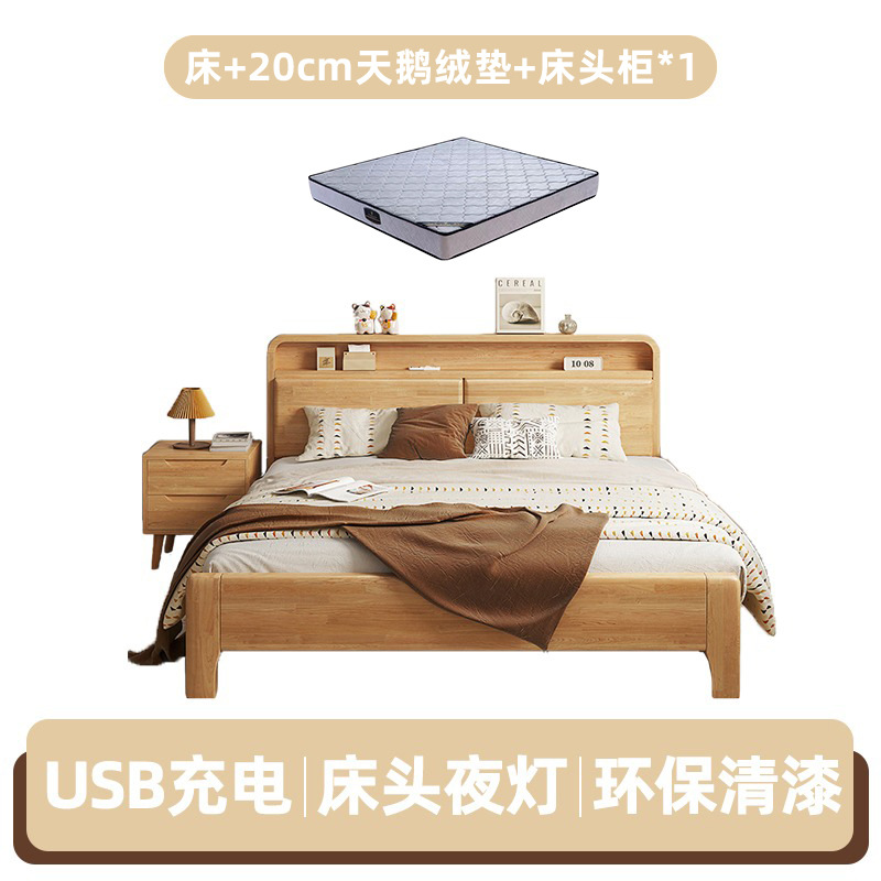 북유럽 순수한 단단한 나무 침대 모든 단단한 나무 현대 간단한 1.8 m 더블 침대 가구 1.5 m 마스터 침실 보관스토어 가기