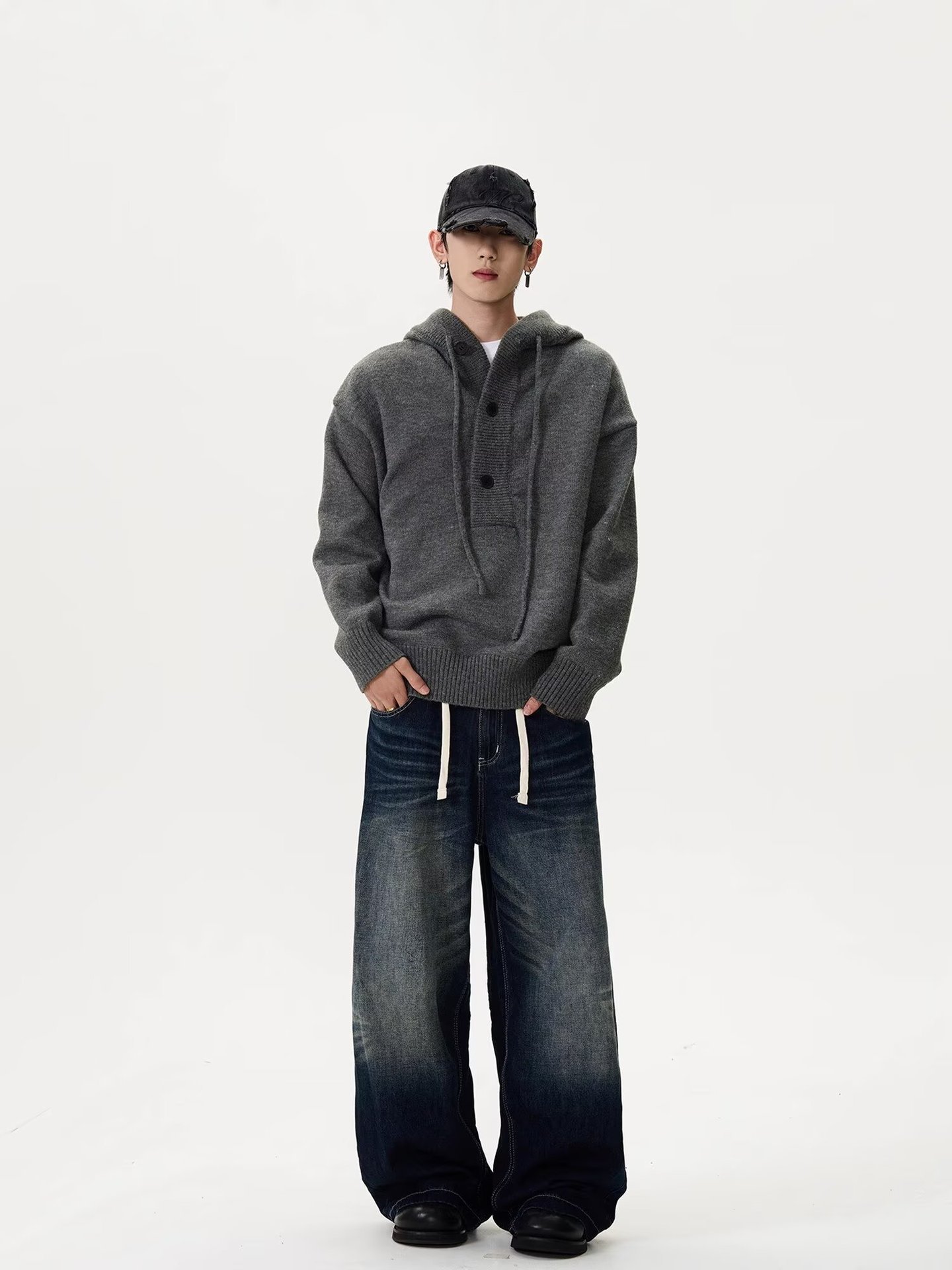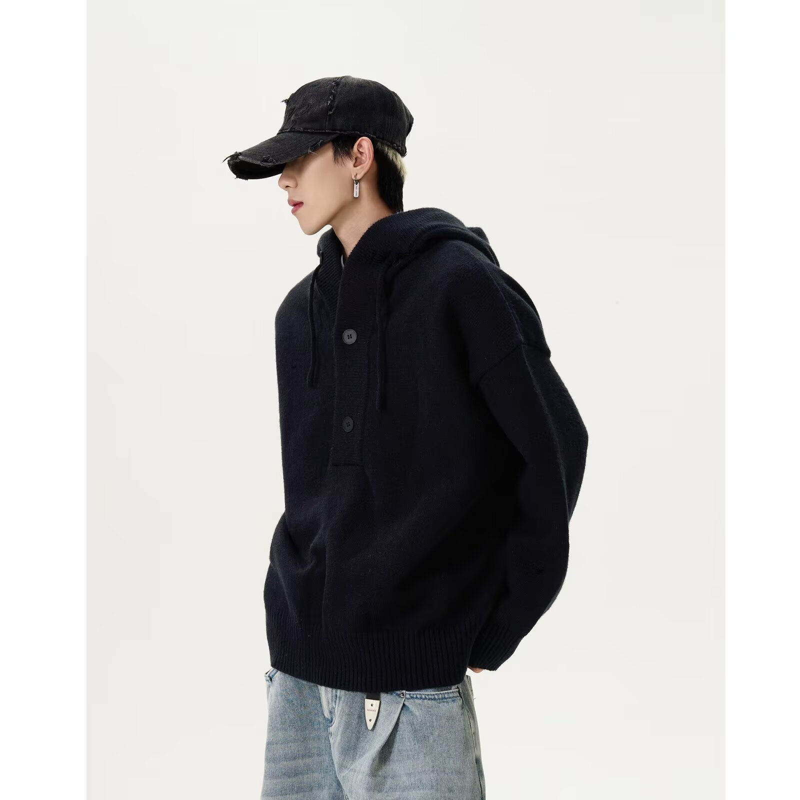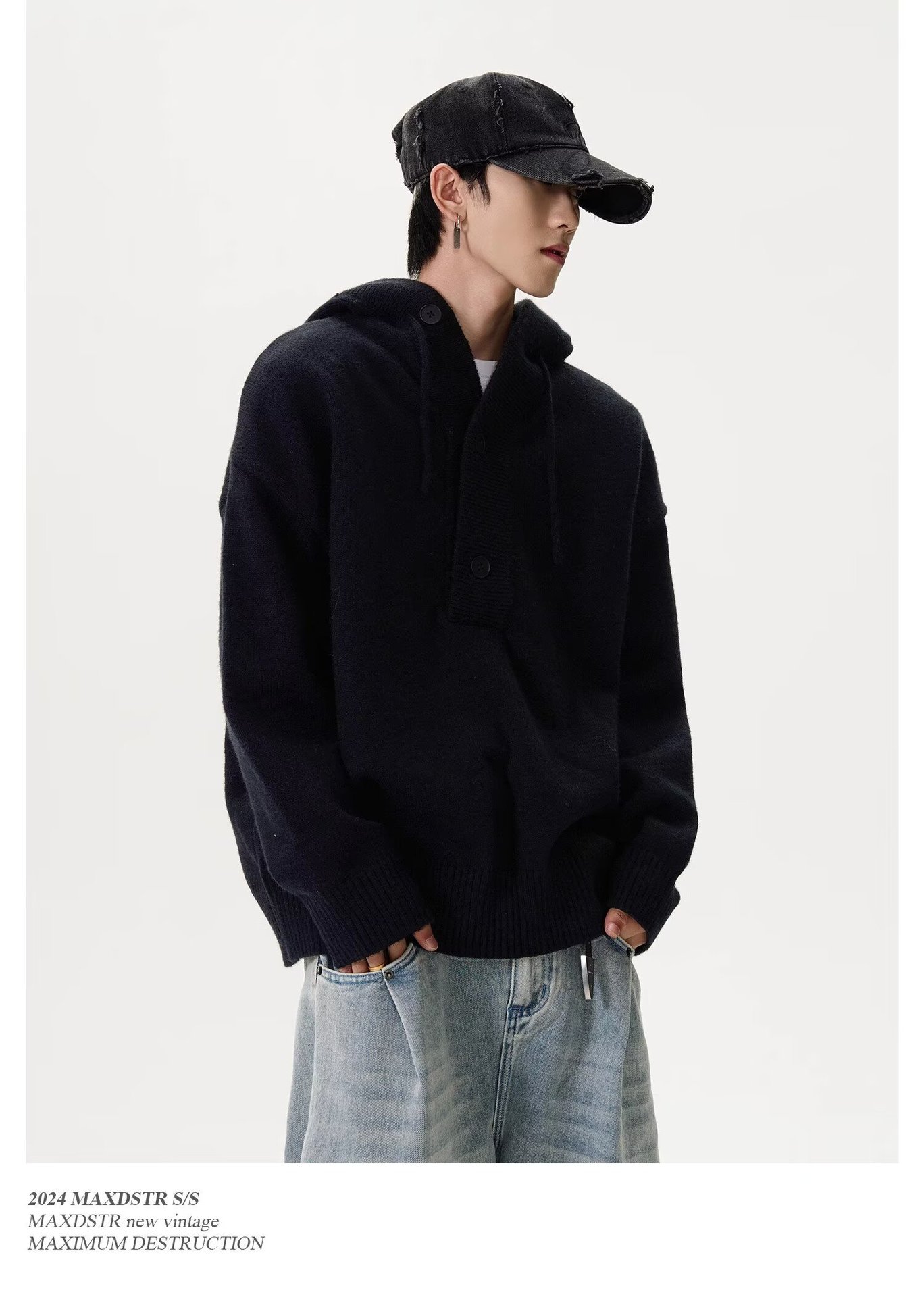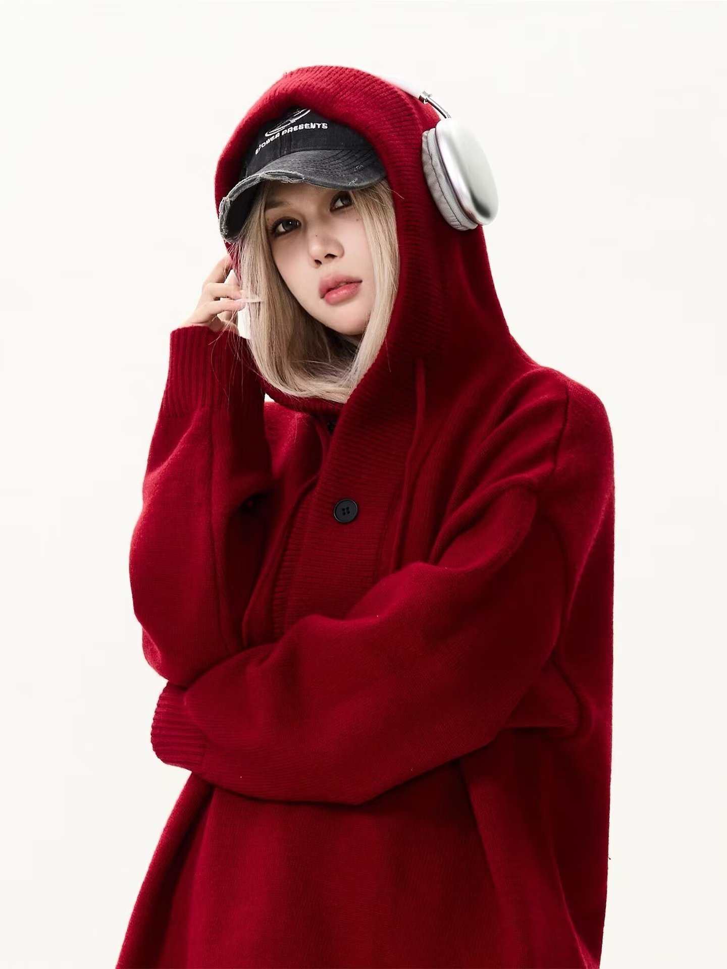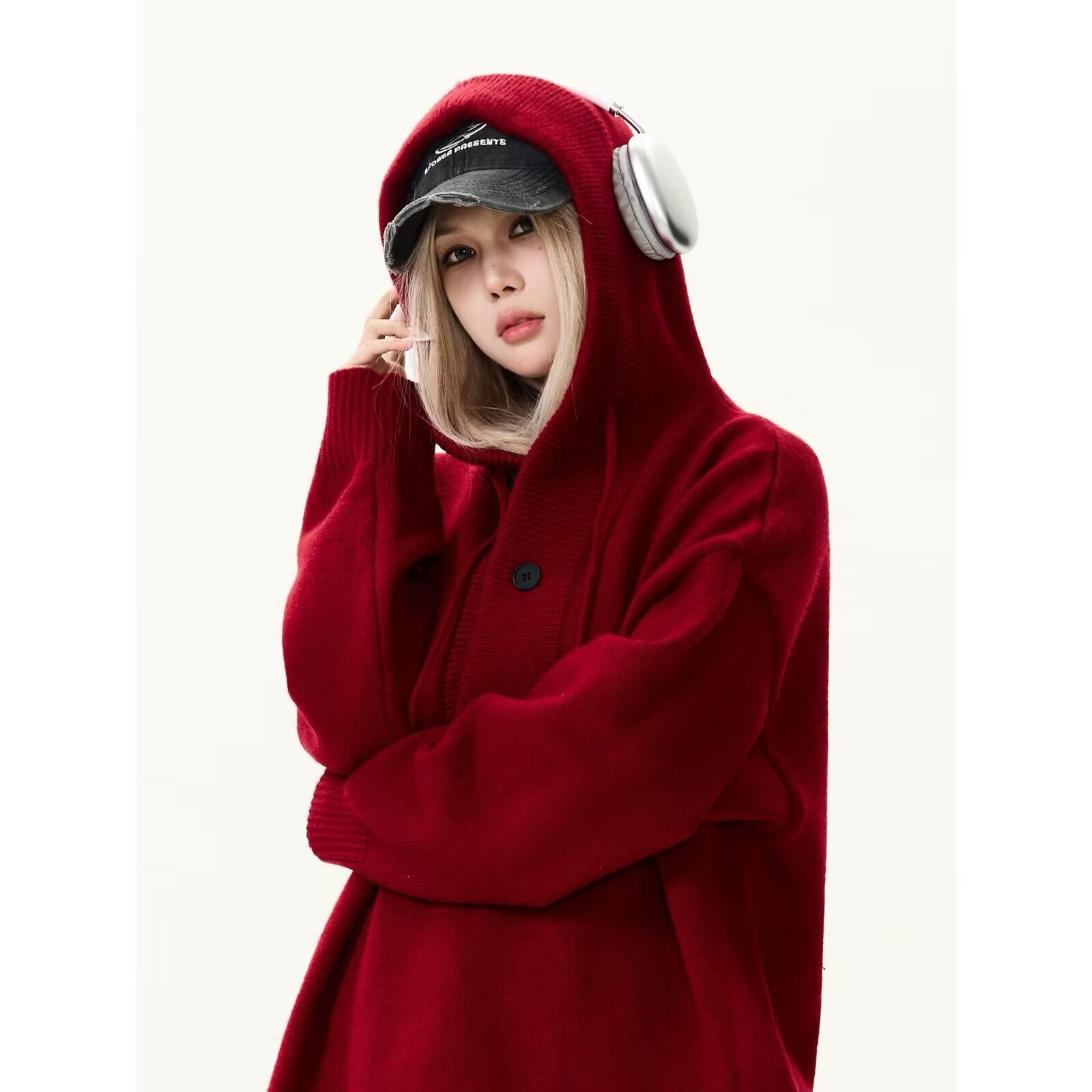 오리지널 공장 레드 가을 겨울 후드 스웨터 남성 하프 카디건 니트웨어 여성 트렌디 브랜드 커플 풀오버 상의