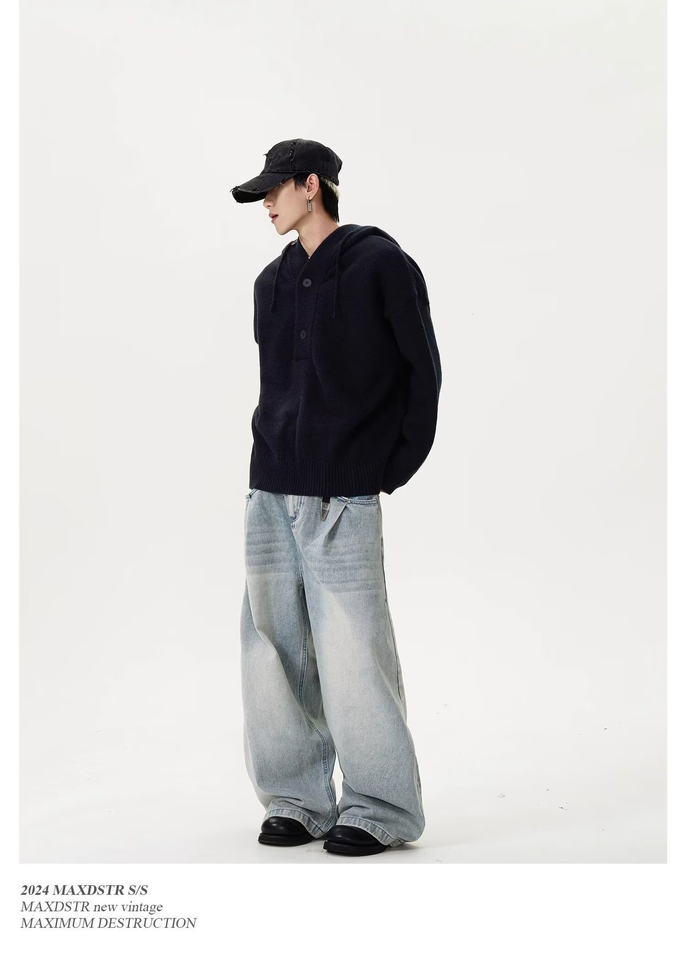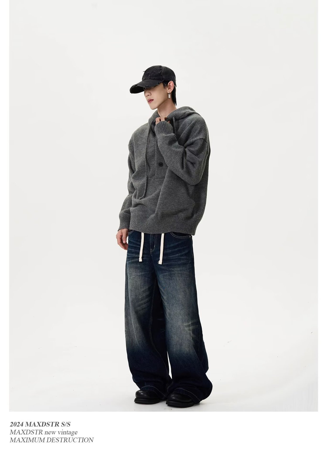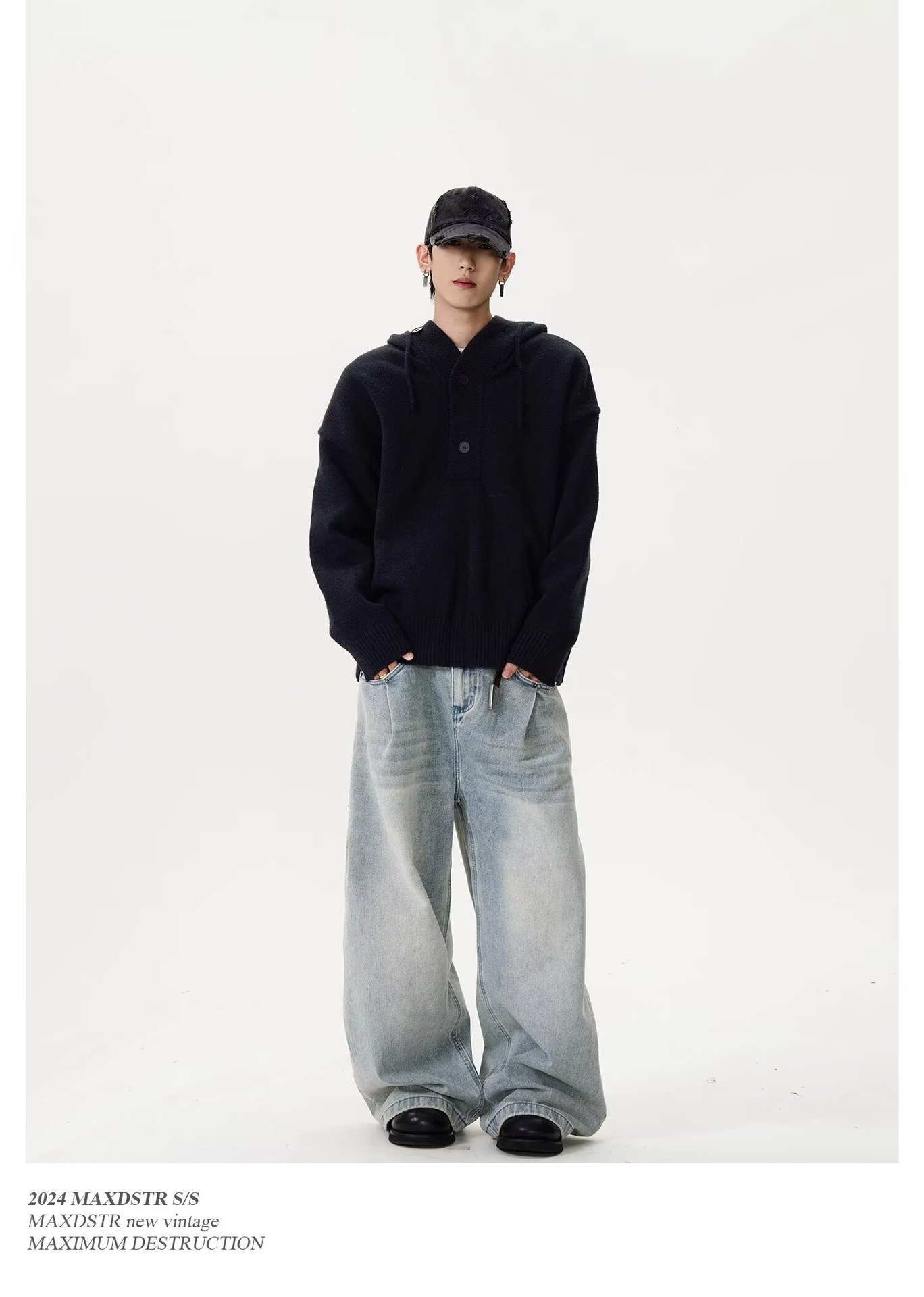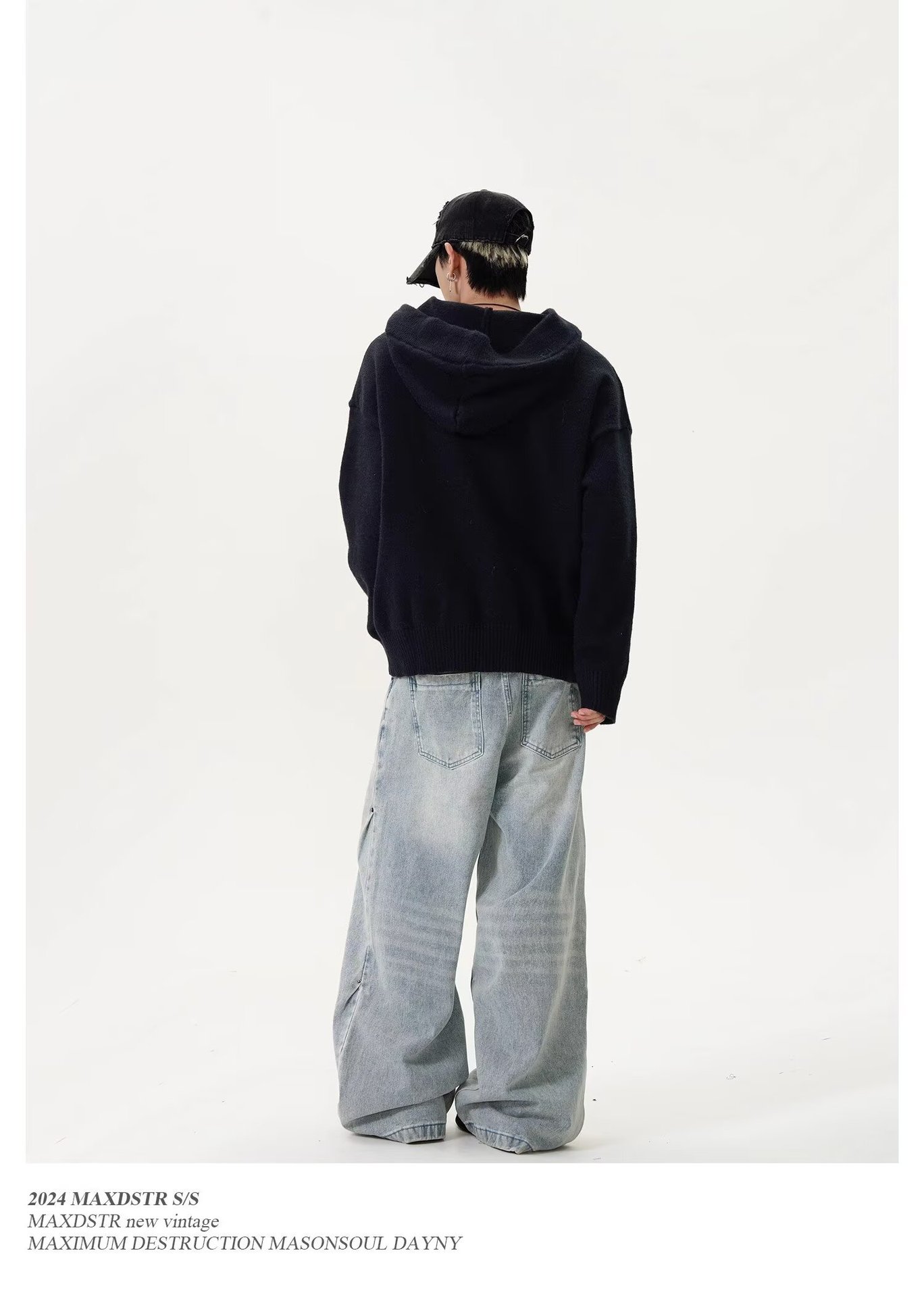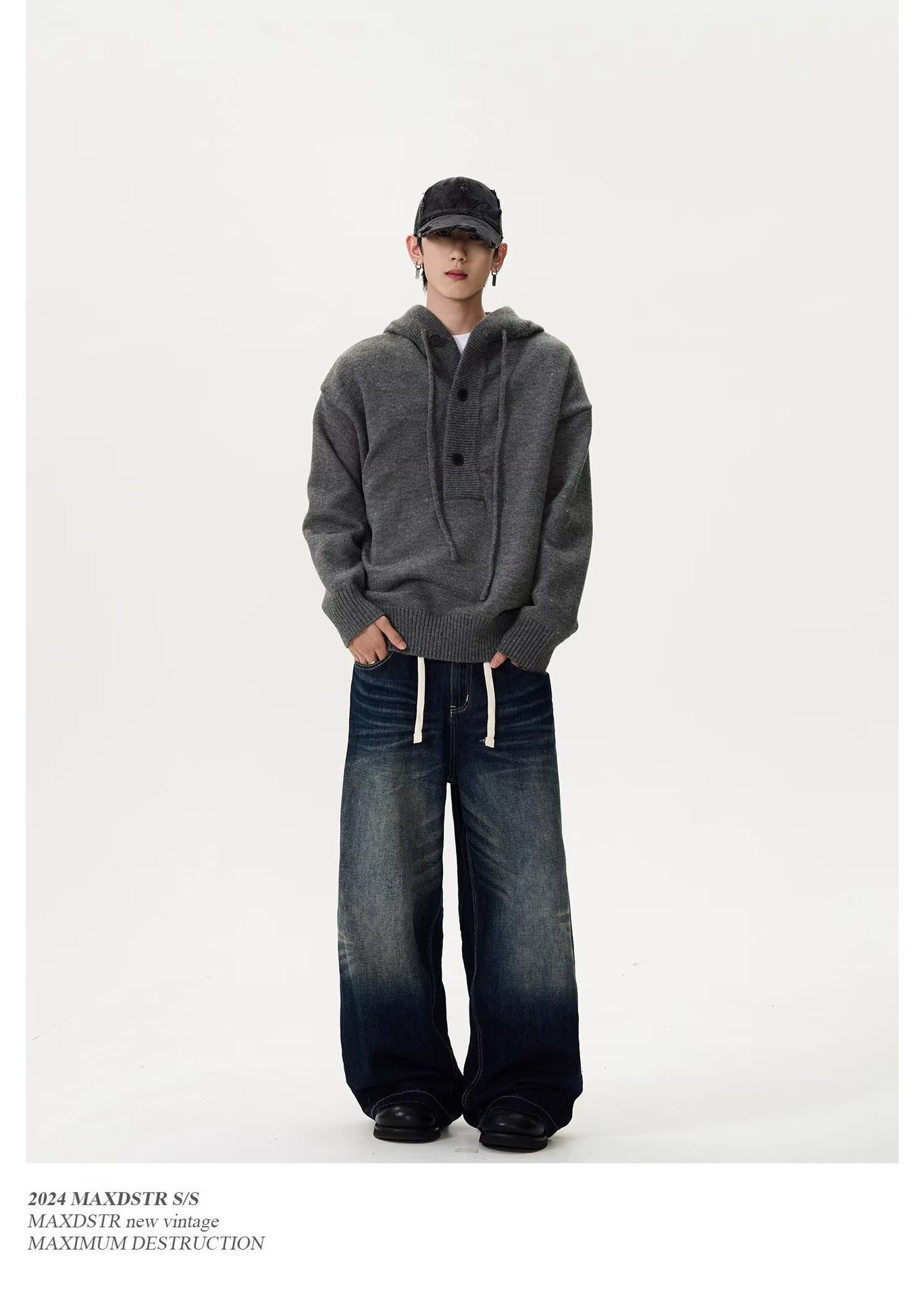 오리지널 공장 레드 가을 겨울 후드 스웨터 남성 하프 카디건 니트웨어 여성 트렌디 브랜드 커플 풀오버 상의