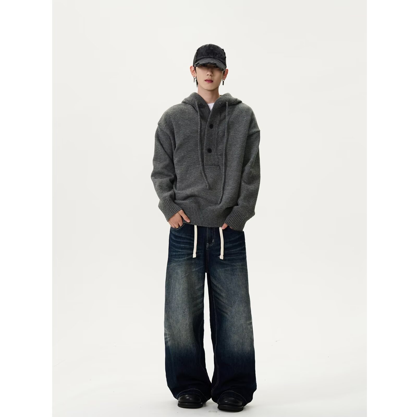 오리지널 공장 레드 가을 겨울 후드 스웨터 남성 하프 카디건 니트웨어 여성 트렌디 브랜드 커플 풀오버 상의스토어 가기