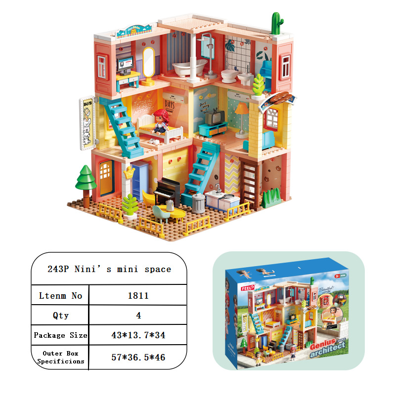 국경 간 수출 어린이 놀이 집 교육 DIY 오두막 대형 입자 빌딩 블록 장면 빌라 조립 소녀 장난감