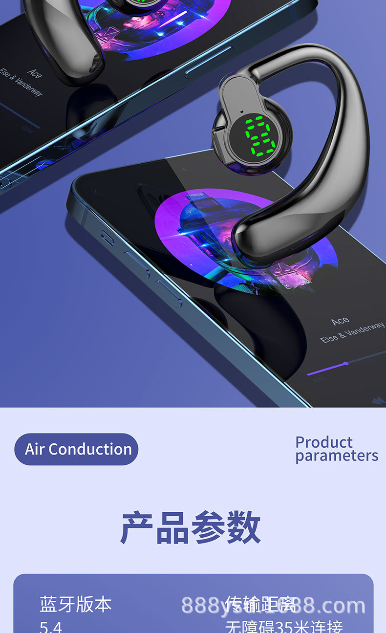 OWS 디지털 디스플레이 무선 블루투스 이어폰 오픈형 애플 화웨이 OPPO 샤오미 비보 휴대폰 호환