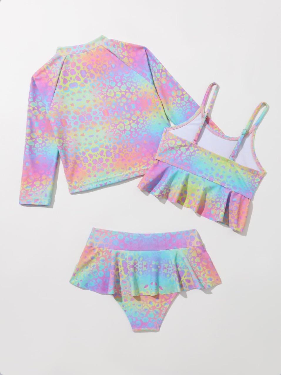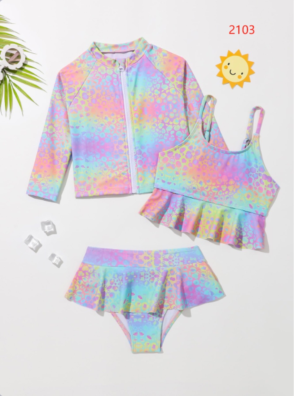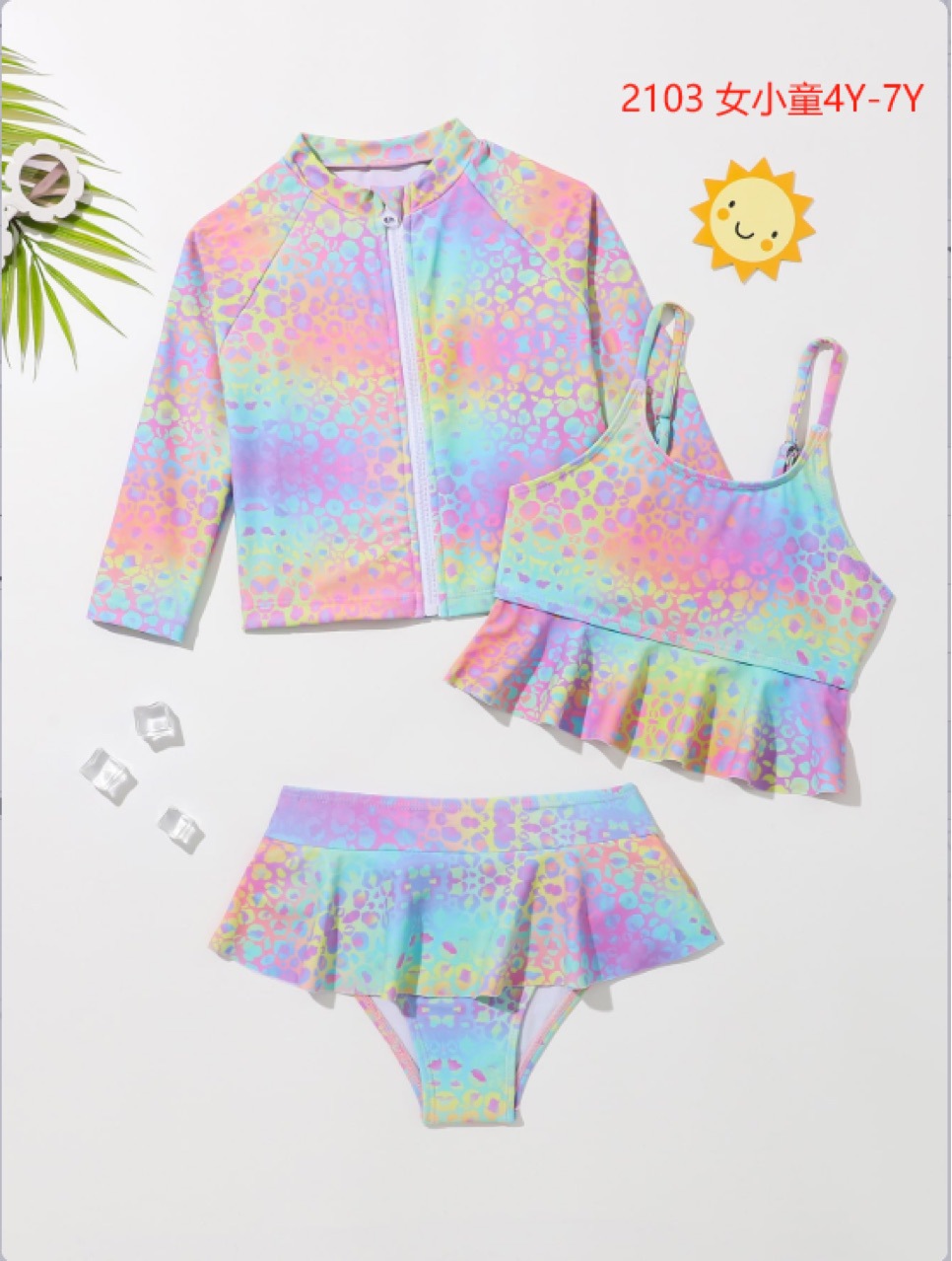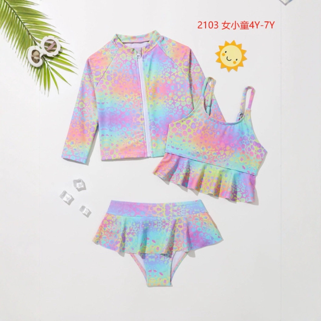 2025 새로운 스타일 4-7 세 아기 소녀 태양 보호 무지개 색 수영복 AliExpress Amazon 핫 스타일