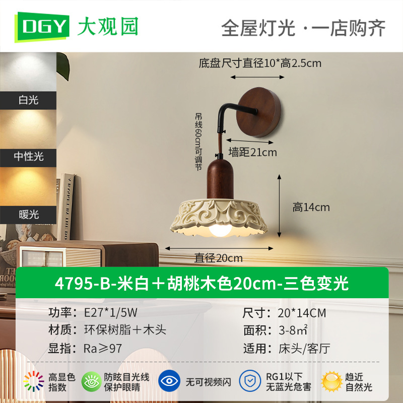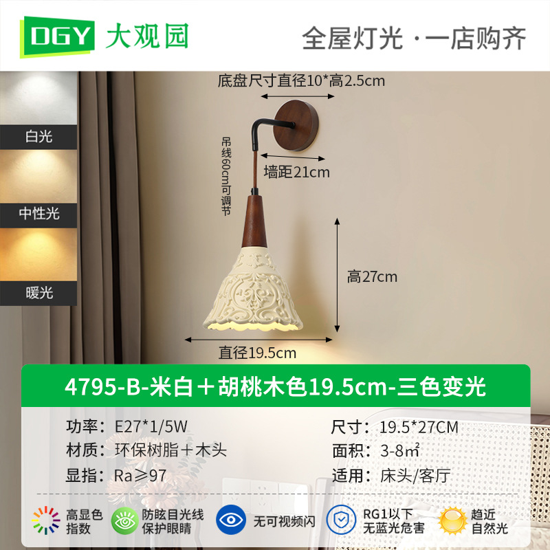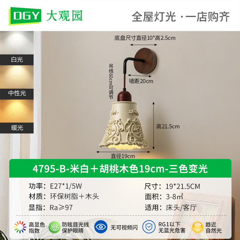 다관위안 레트로 벽등 침실 침대등 창의적인 개성 있는 조각 장식 B&B 분위기 있는 중세풍 조명기구 522L