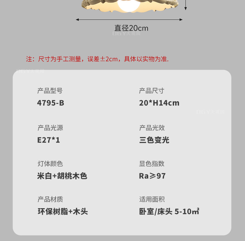 • 4795-벽등-A형 오프화이트+월넛색상 20cm-3색-풀스펙트럼