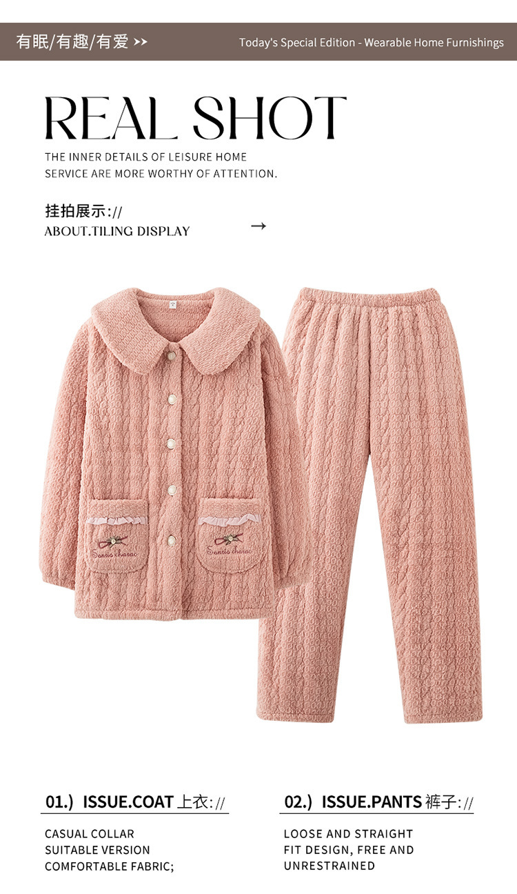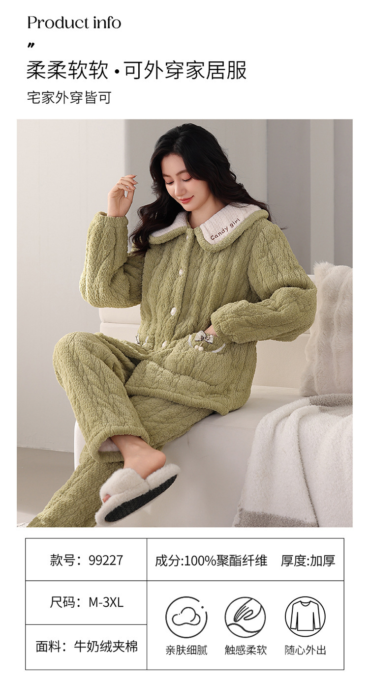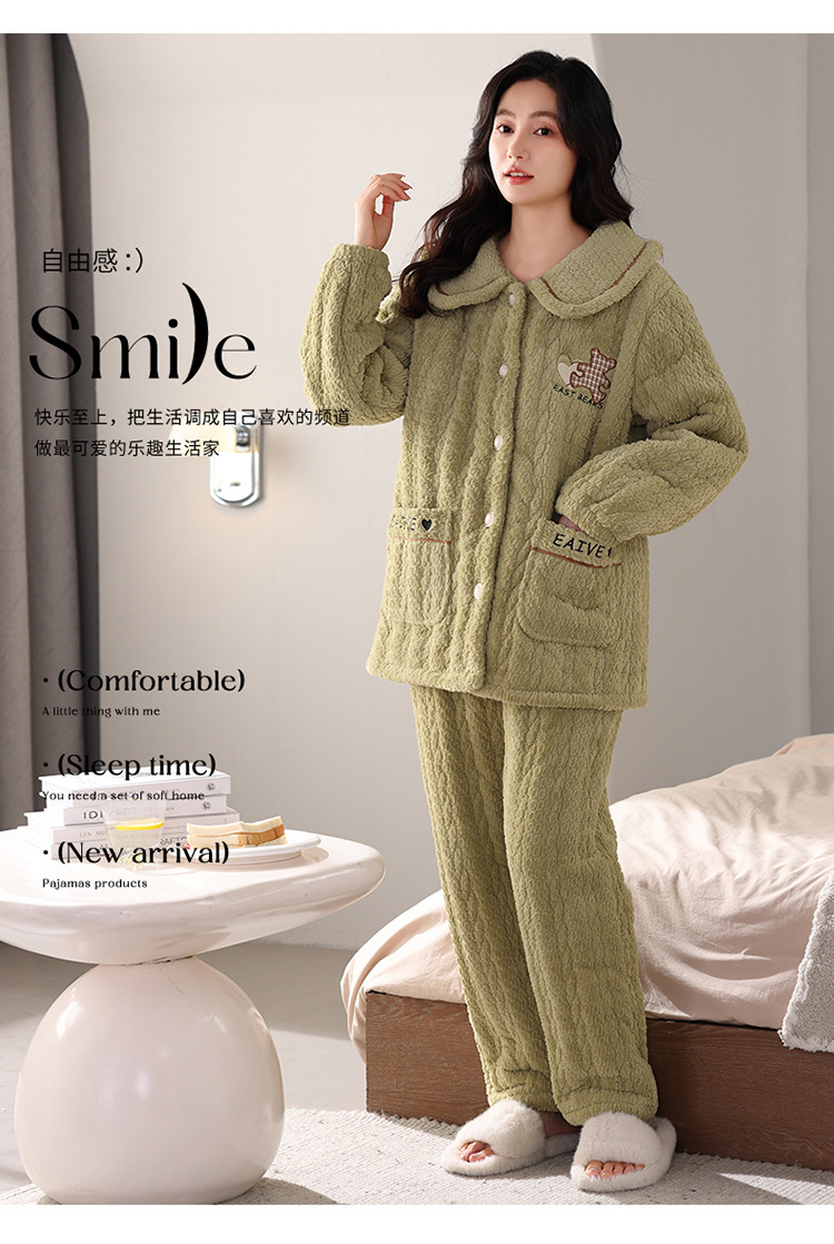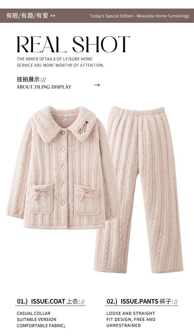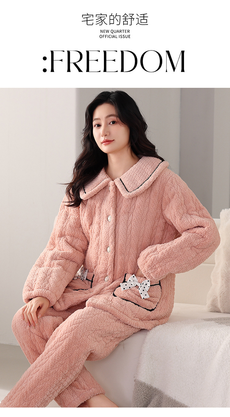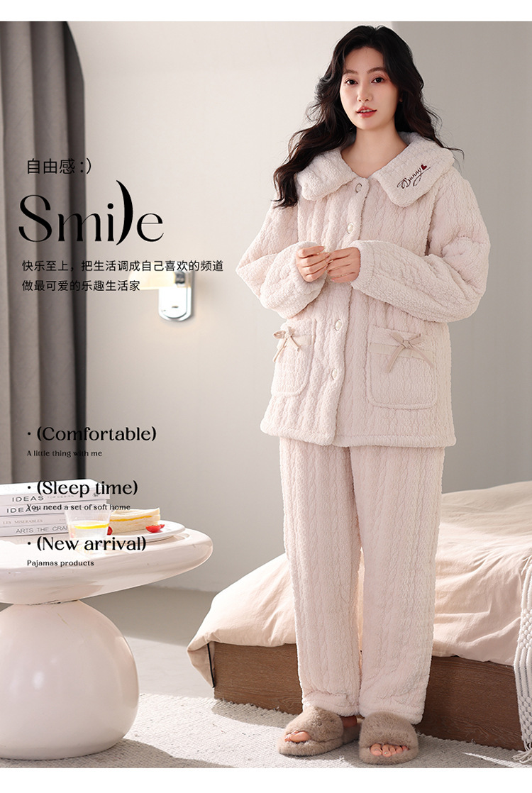 밀크 벨벳 3 층 두꺼운 퀼트 여성용 파자마 따뜻한 귀여운 기모 겨울 스위트 홈 옷 세트 코튼 패딩 재킷