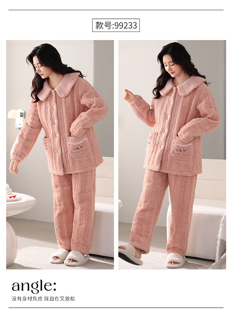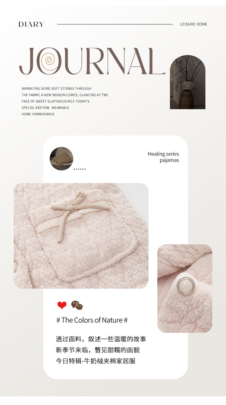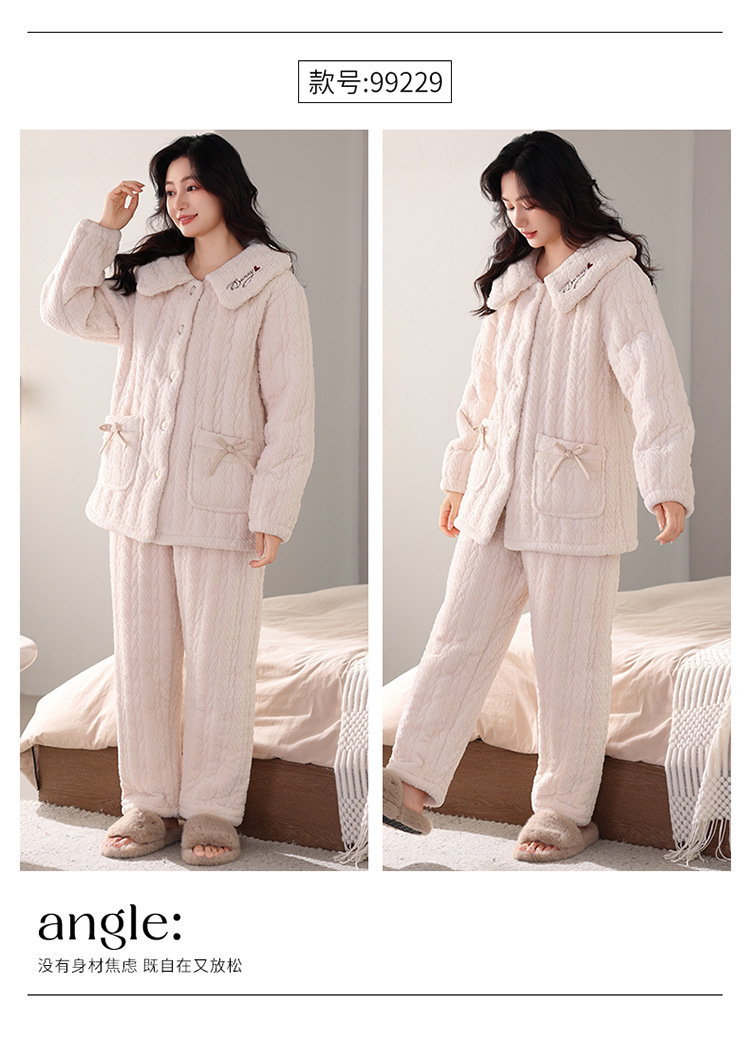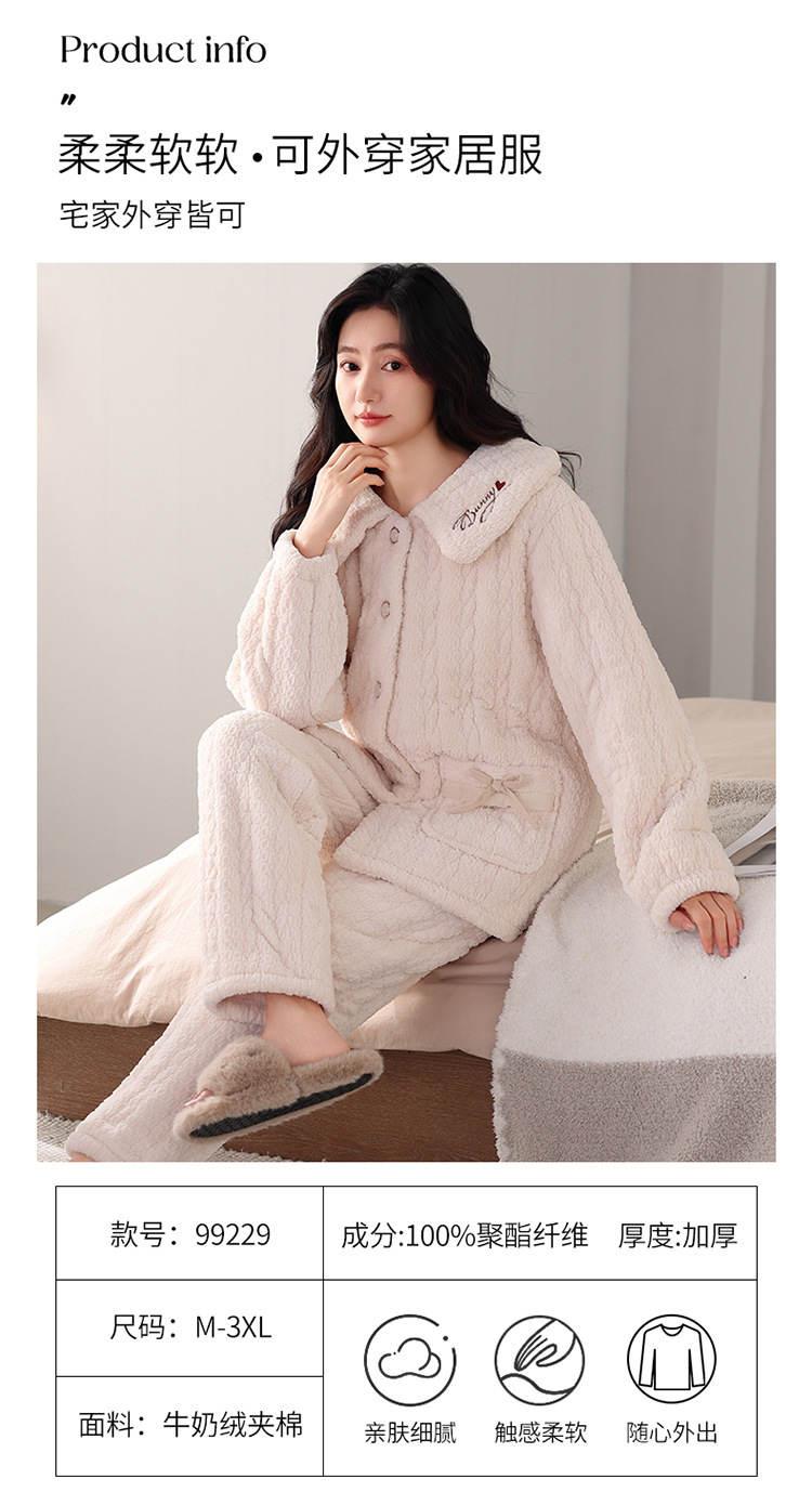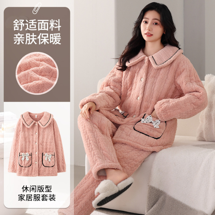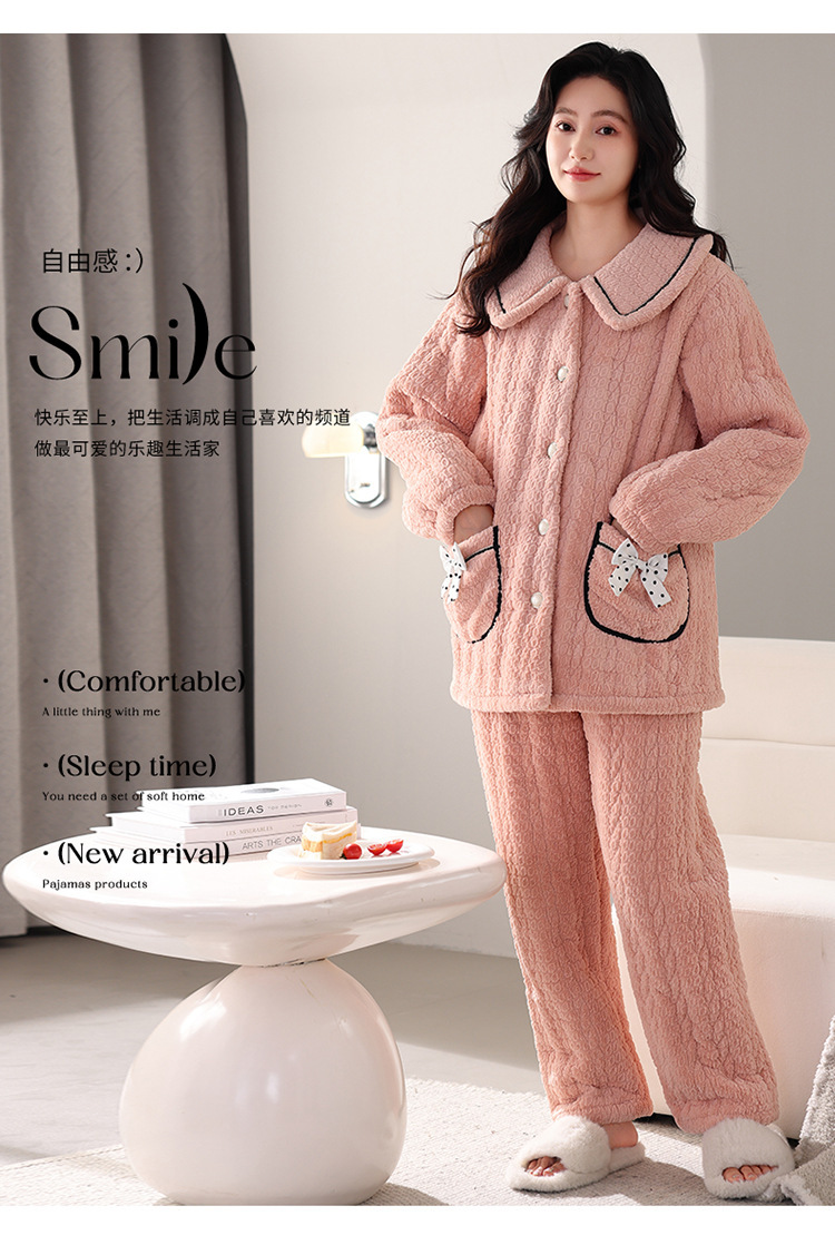 밀크 벨벳 3 층 두꺼운 퀼트 여성용 파자마 따뜻한 귀여운 기모 겨울 스위트 홈 옷 세트 코튼 패딩 재킷