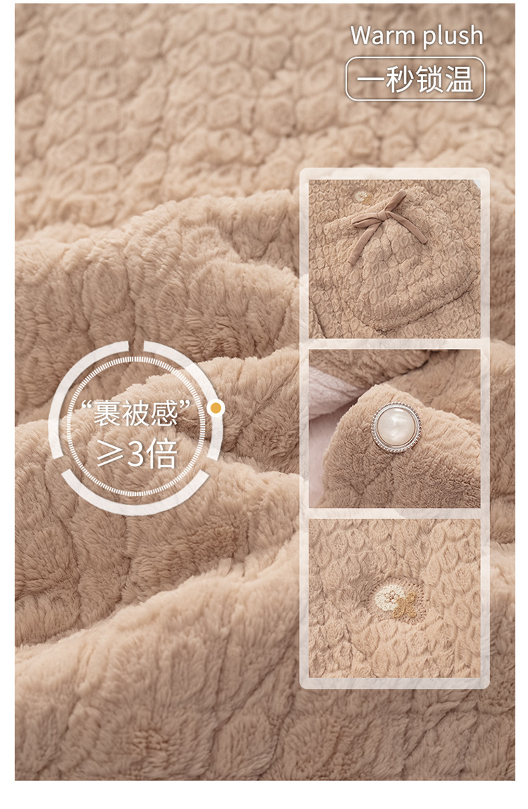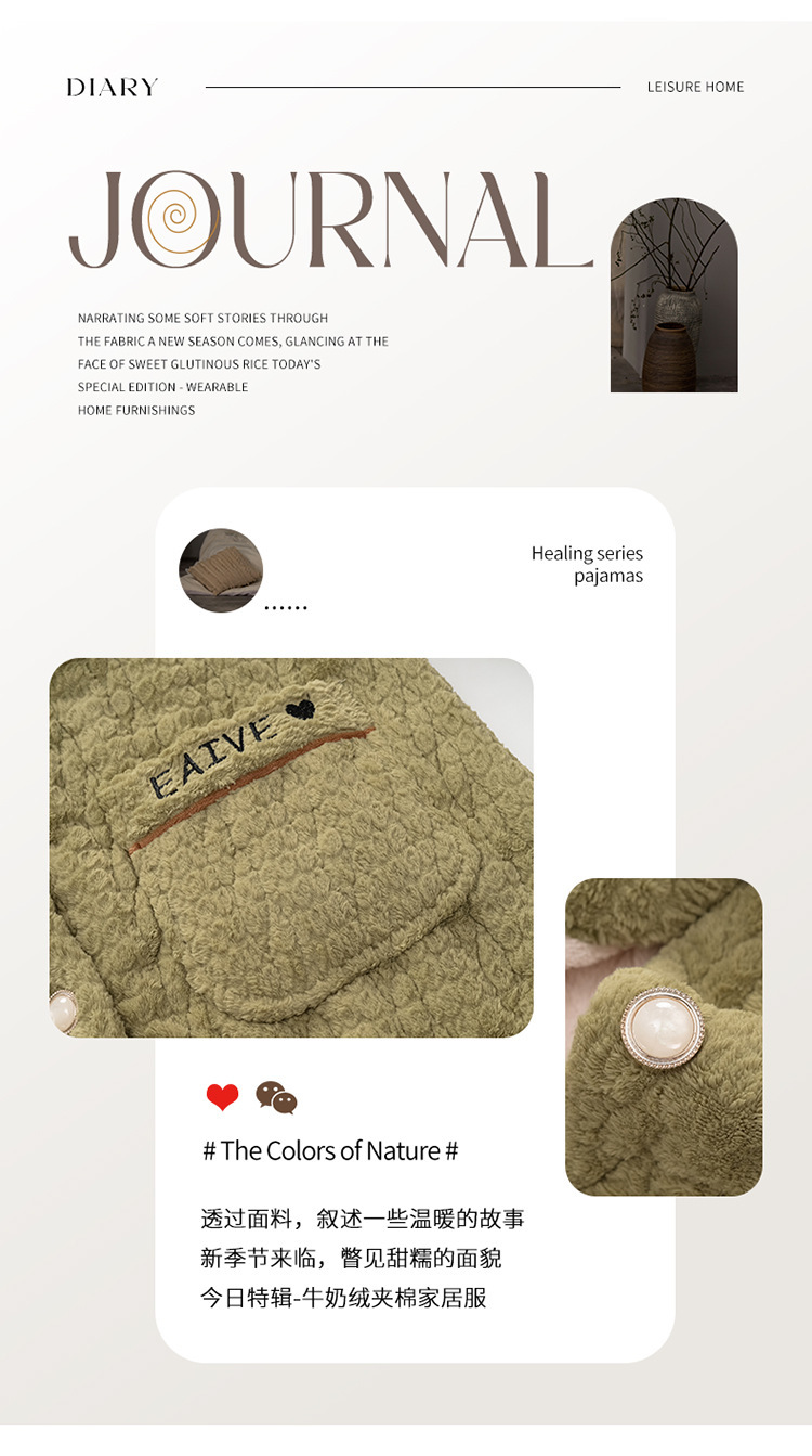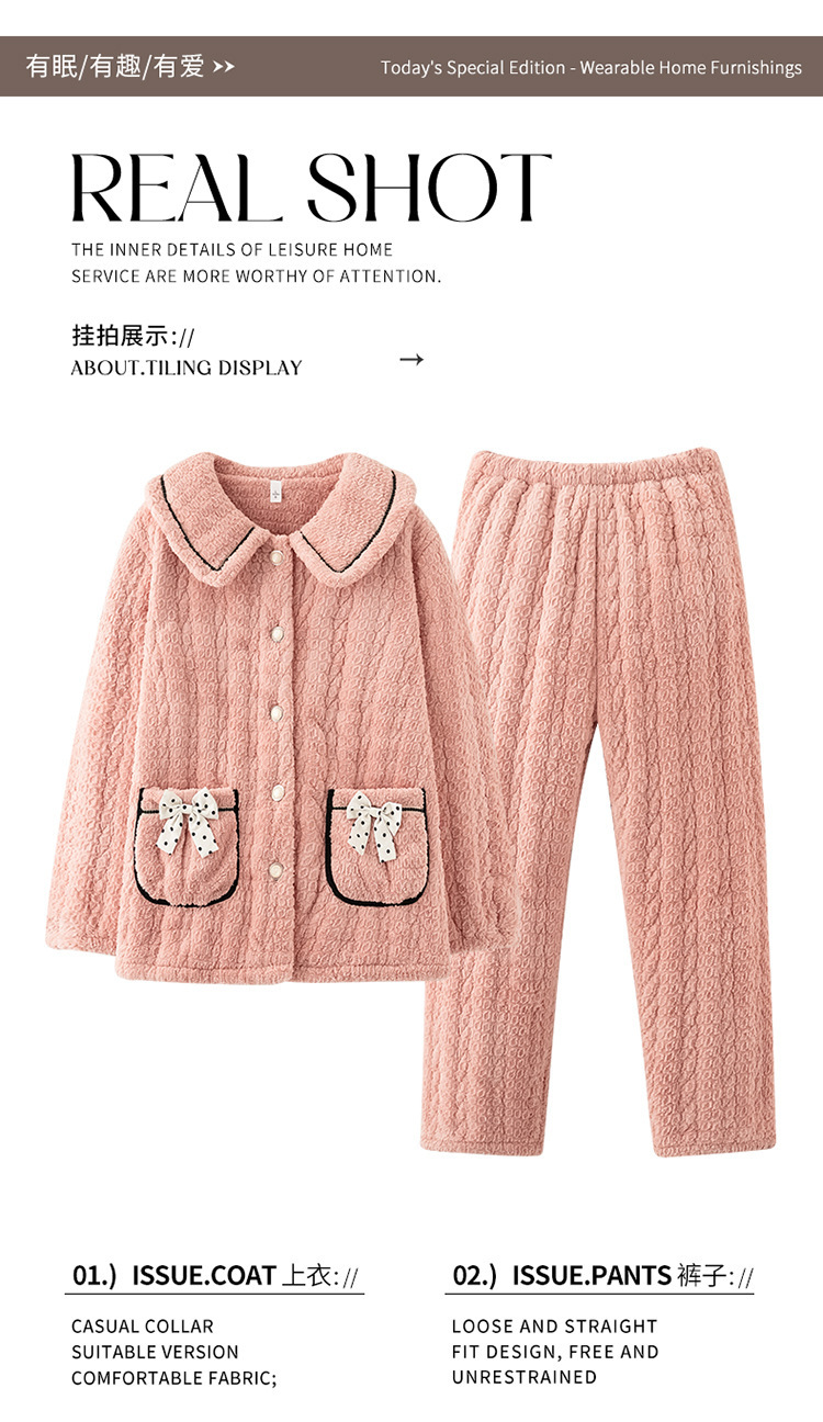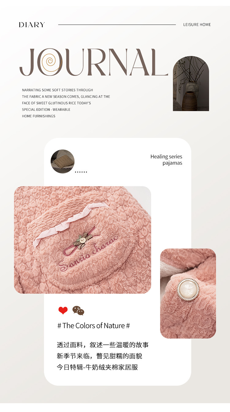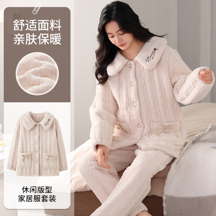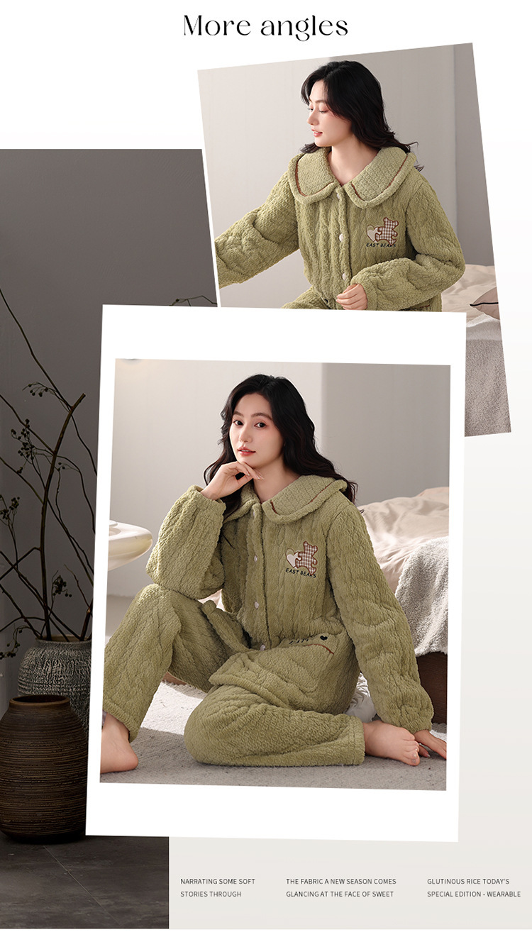 밀크 벨벳 3 층 두꺼운 퀼트 여성용 파자마 따뜻한 귀여운 기모 겨울 스위트 홈 옷 세트 코튼 패딩 재킷