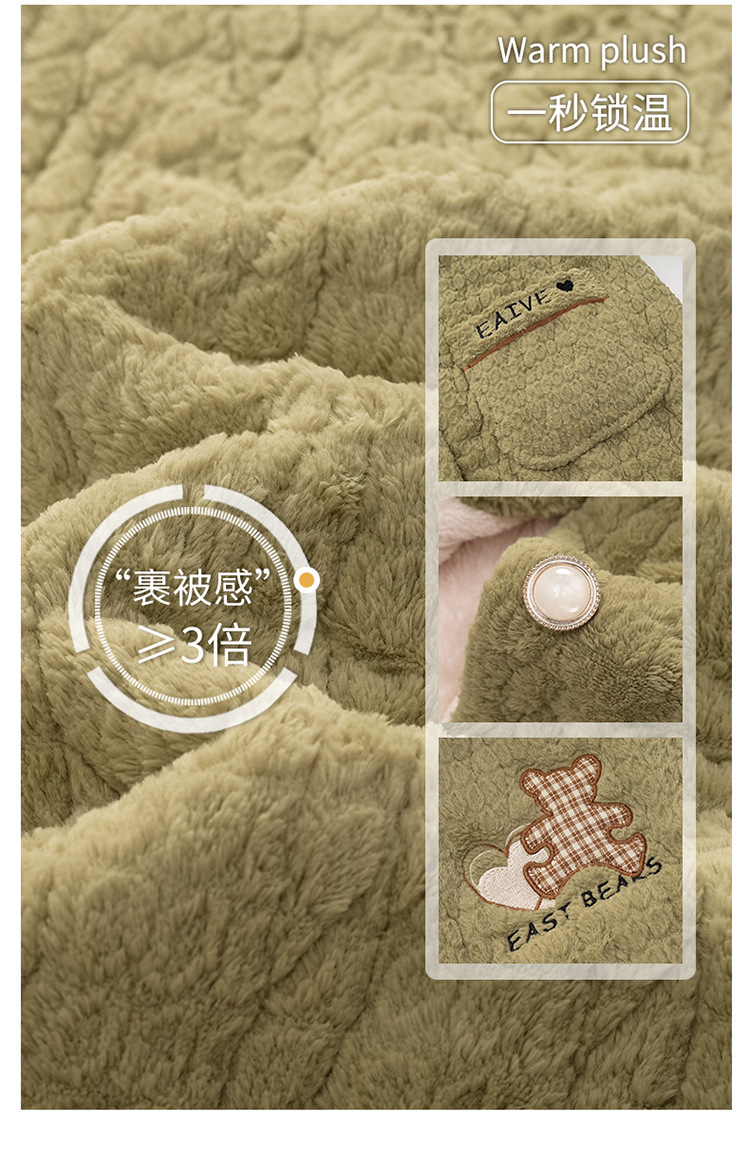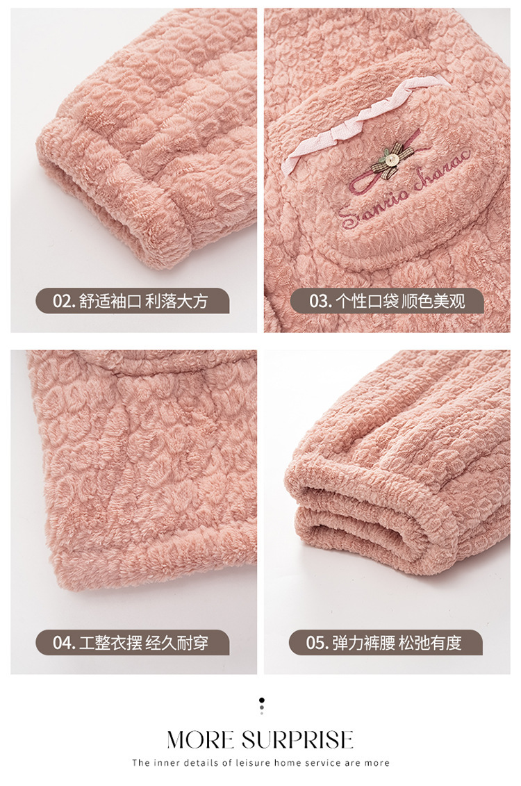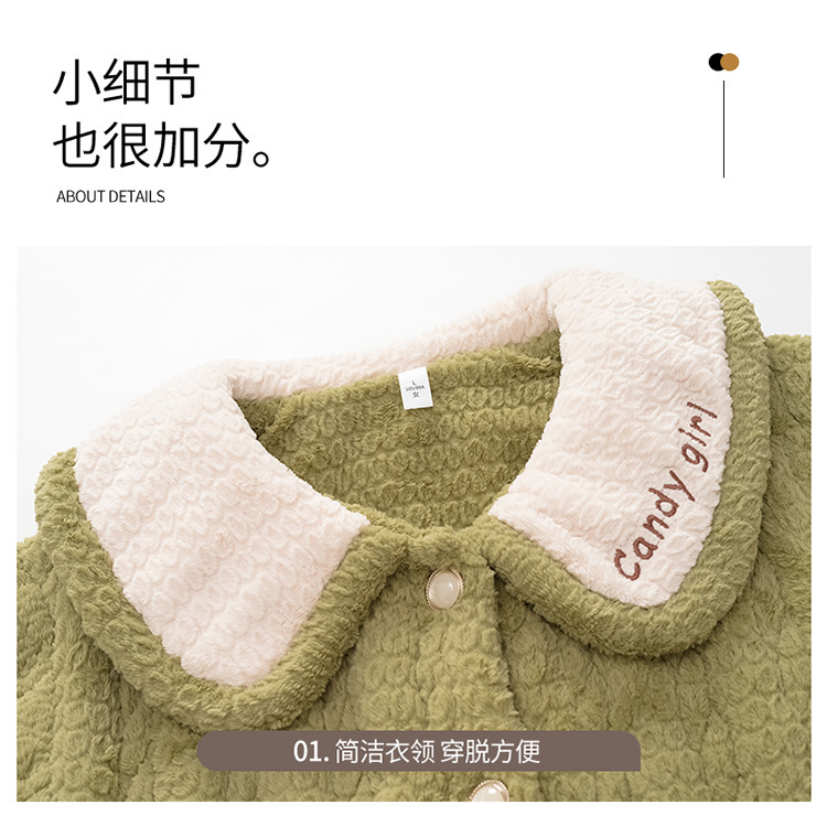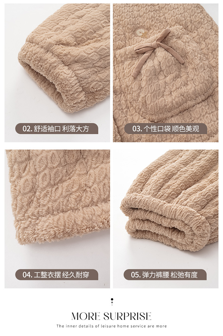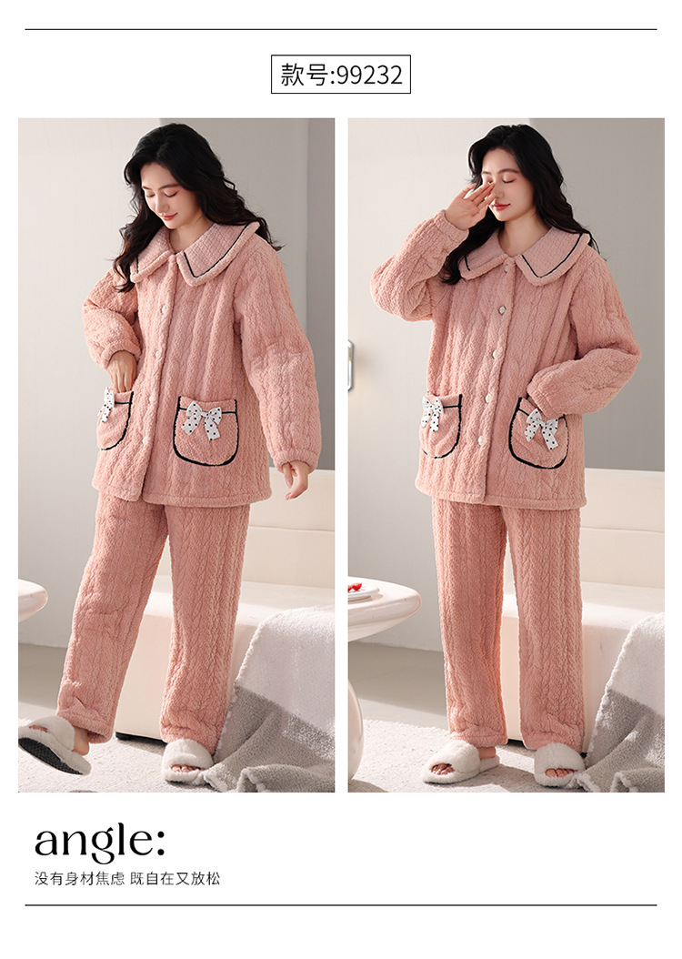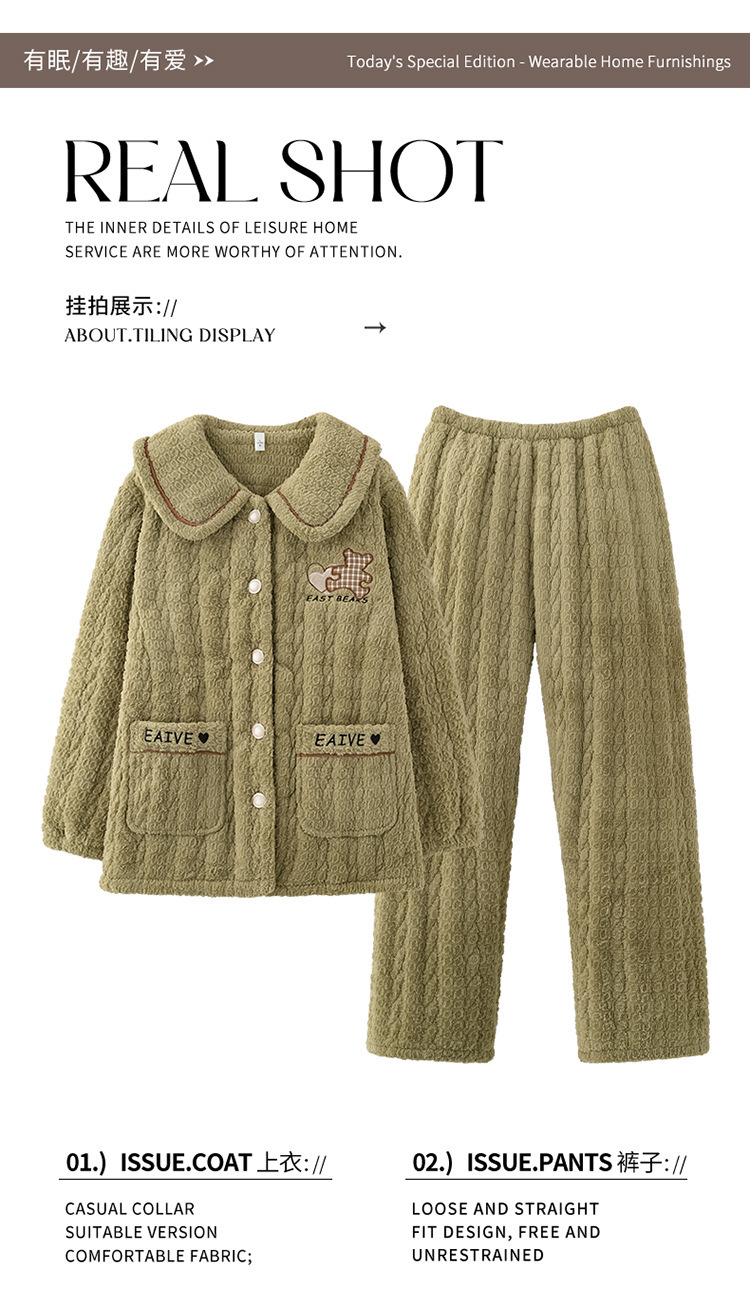 밀크 벨벳 3 층 두꺼운 퀼트 여성용 파자마 따뜻한 귀여운 기모 겨울 스위트 홈 옷 세트 코튼 패딩 재킷