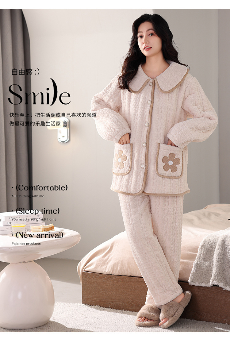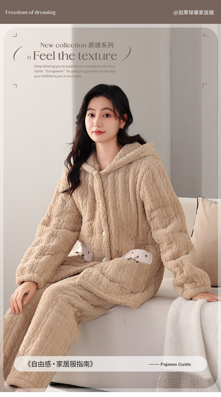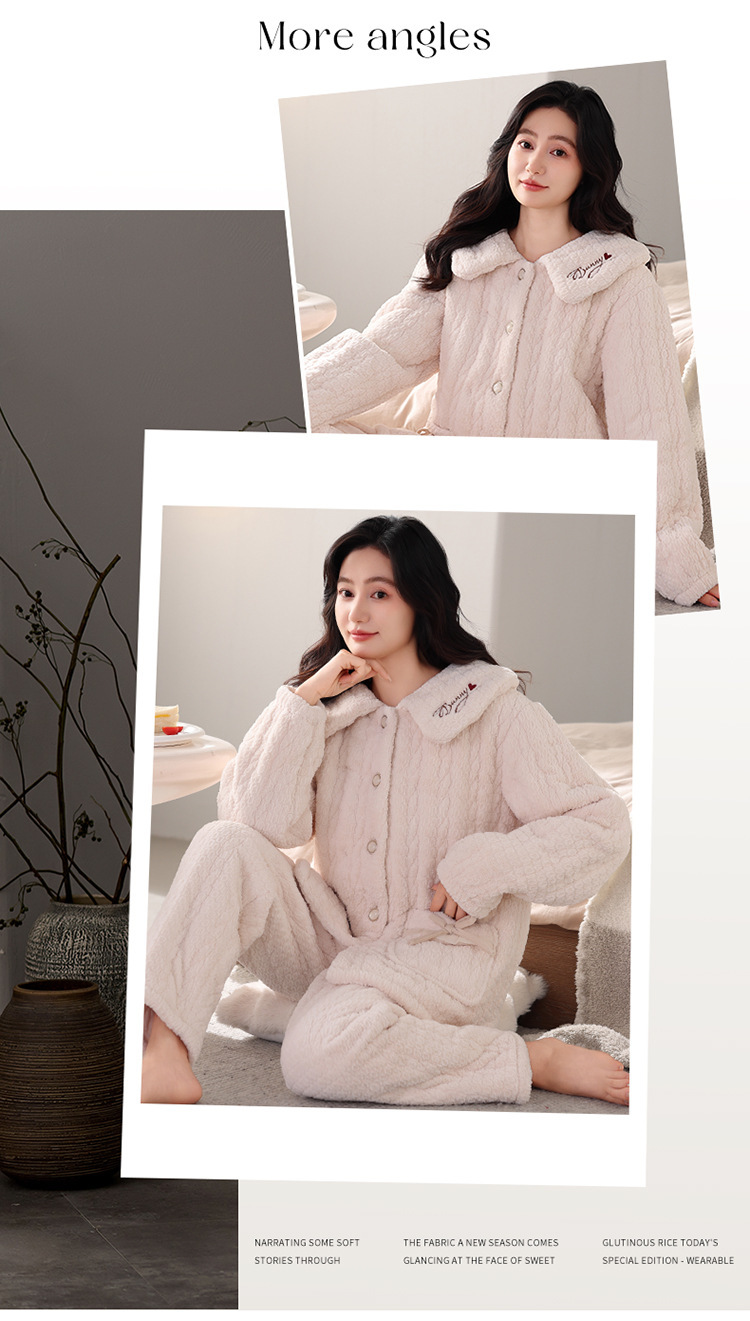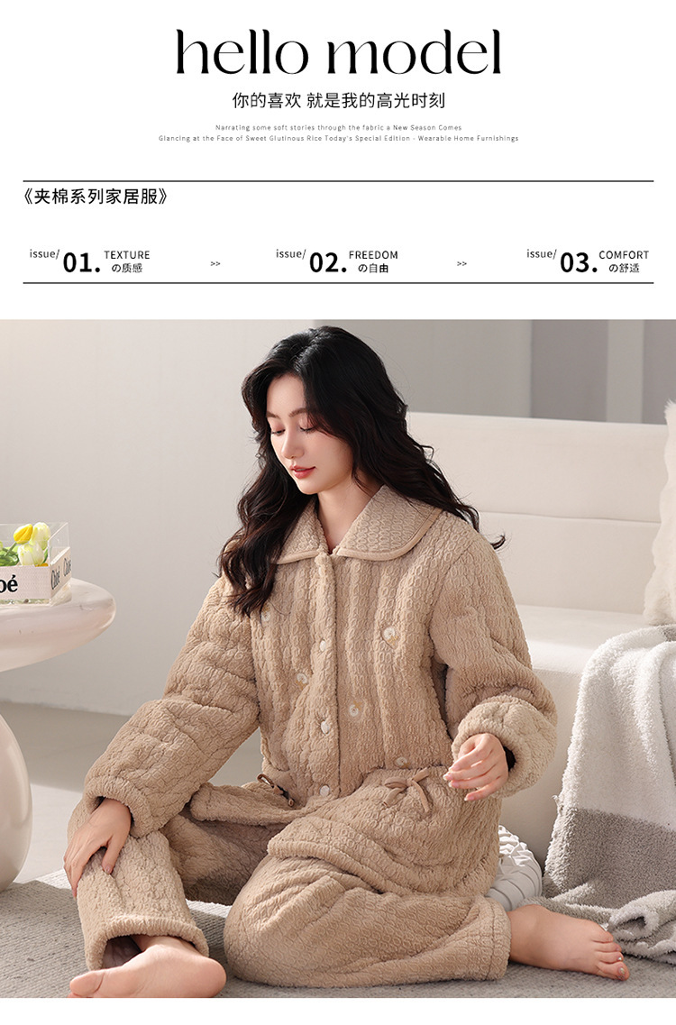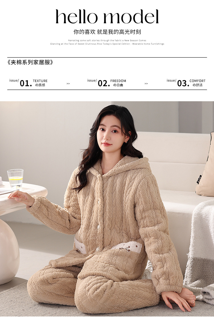 밀크 벨벳 3 층 두꺼운 퀼트 여성용 파자마 따뜻한 귀여운 기모 겨울 스위트 홈 옷 세트 코튼 패딩 재킷스토어 가기