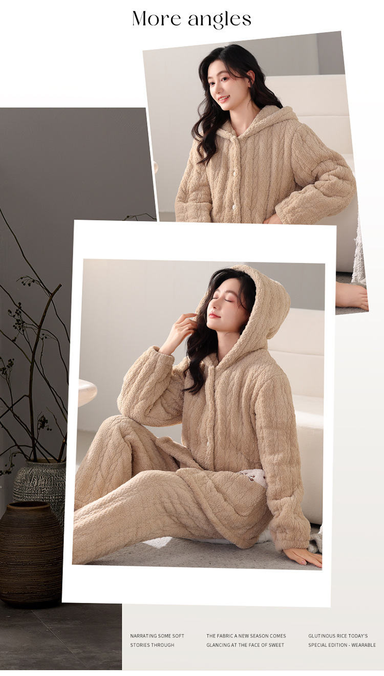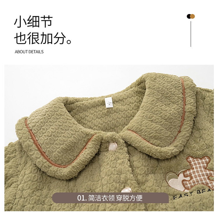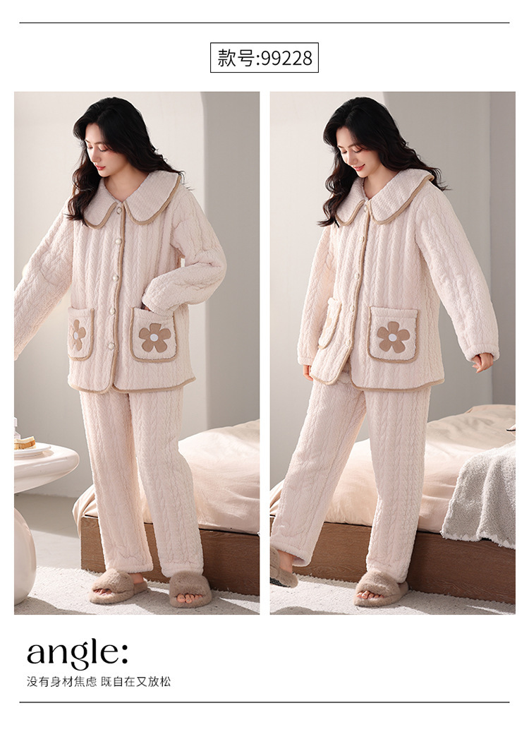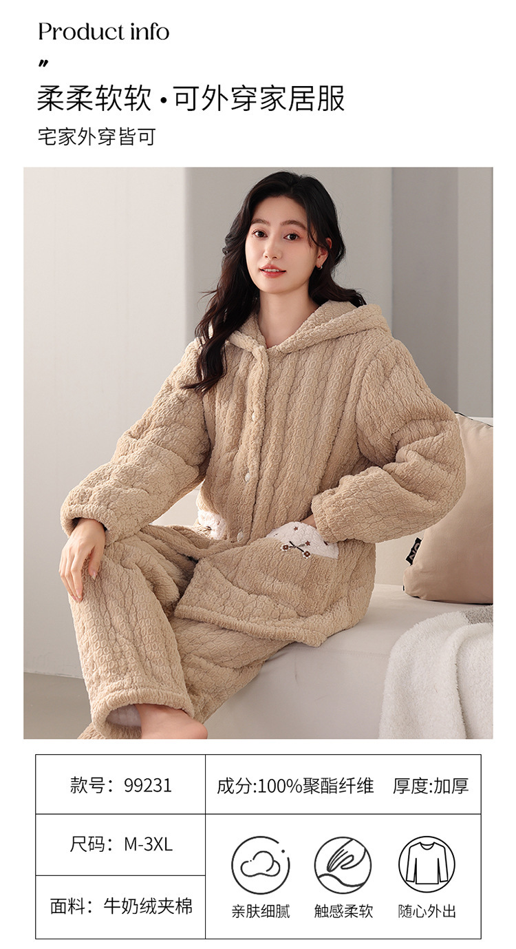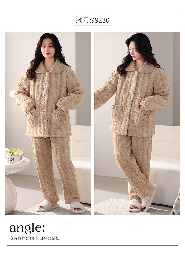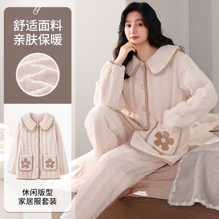 밀크 벨벳 3 층 두꺼운 퀼트 여성용 파자마 따뜻한 귀여운 기모 겨울 스위트 홈 옷 세트 코튼 패딩 재킷스토어 가기
