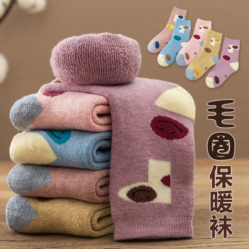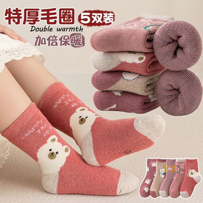 • 학생 및 여아용 두꺼운 테리 보온 양말 5켤레