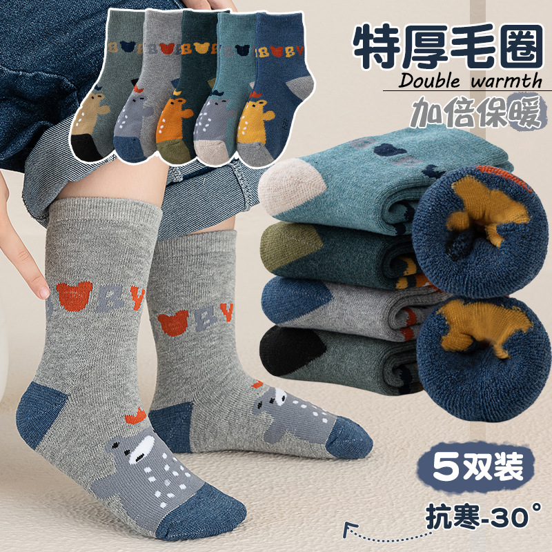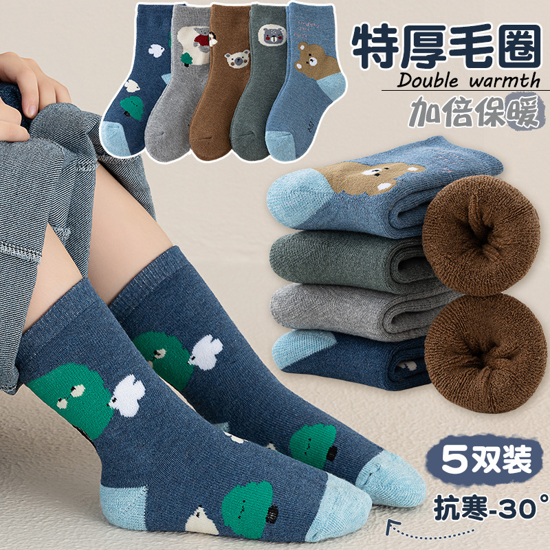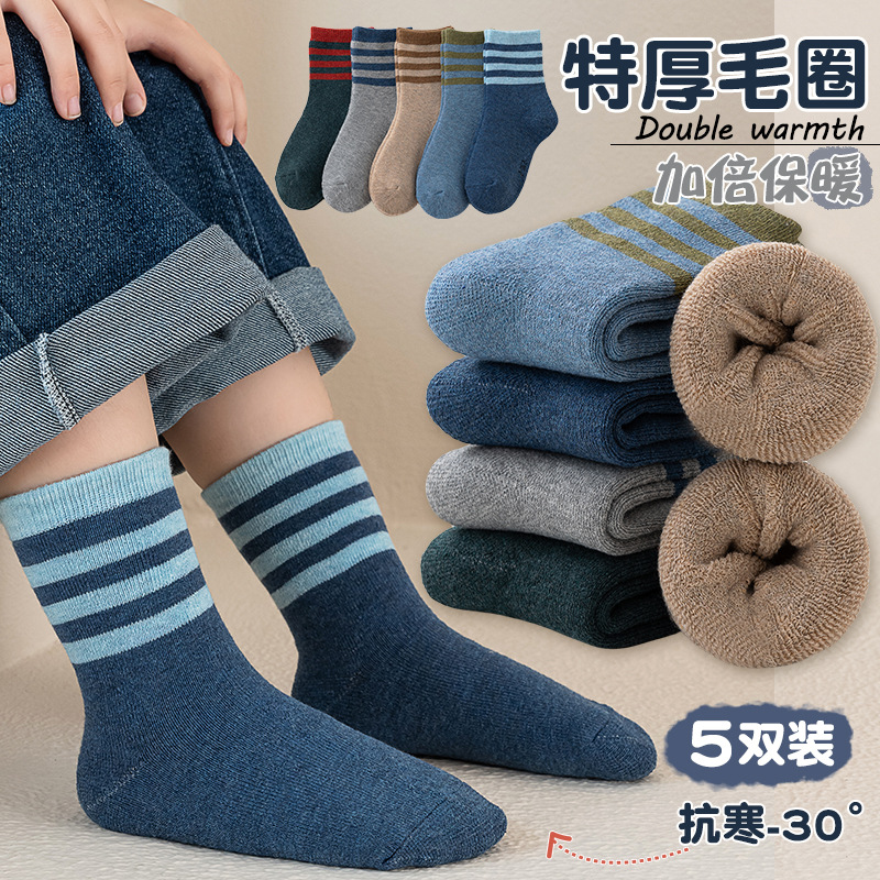 • 학생 및 소년용 두꺼운 테리 열 양말 5켤레