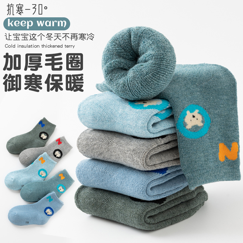 어린이 양말 겨울 두꺼운 소년과 소녀 따뜻한 테리 가을과 겨울 아기 아기 기모 튜브 전체스토어 가기