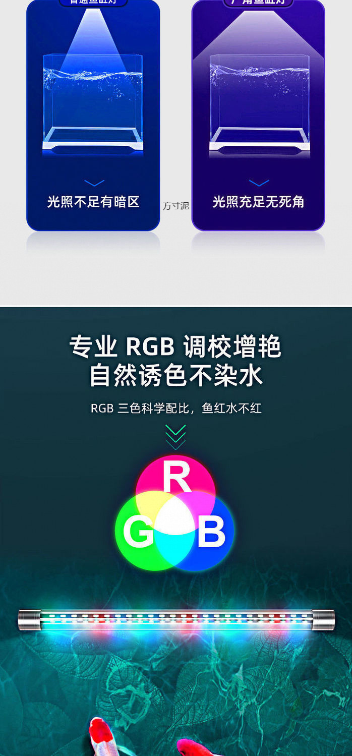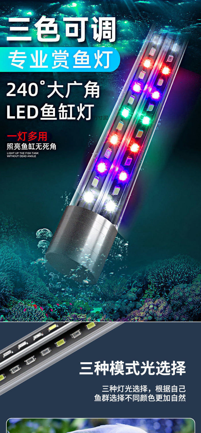 물고기 탱크 램프 led 다채로운 밝은 램프 작은 물고기 탱크 램프 삼색 수족관 다이빙 조명 공장 도매스토어 가기