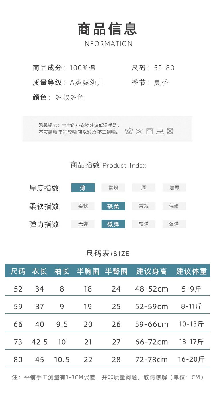 아기 반팔 코튼 코튼 뼈없는 여름 얇은 신생아 옷 남성과 여성 아기 삼각형 romper