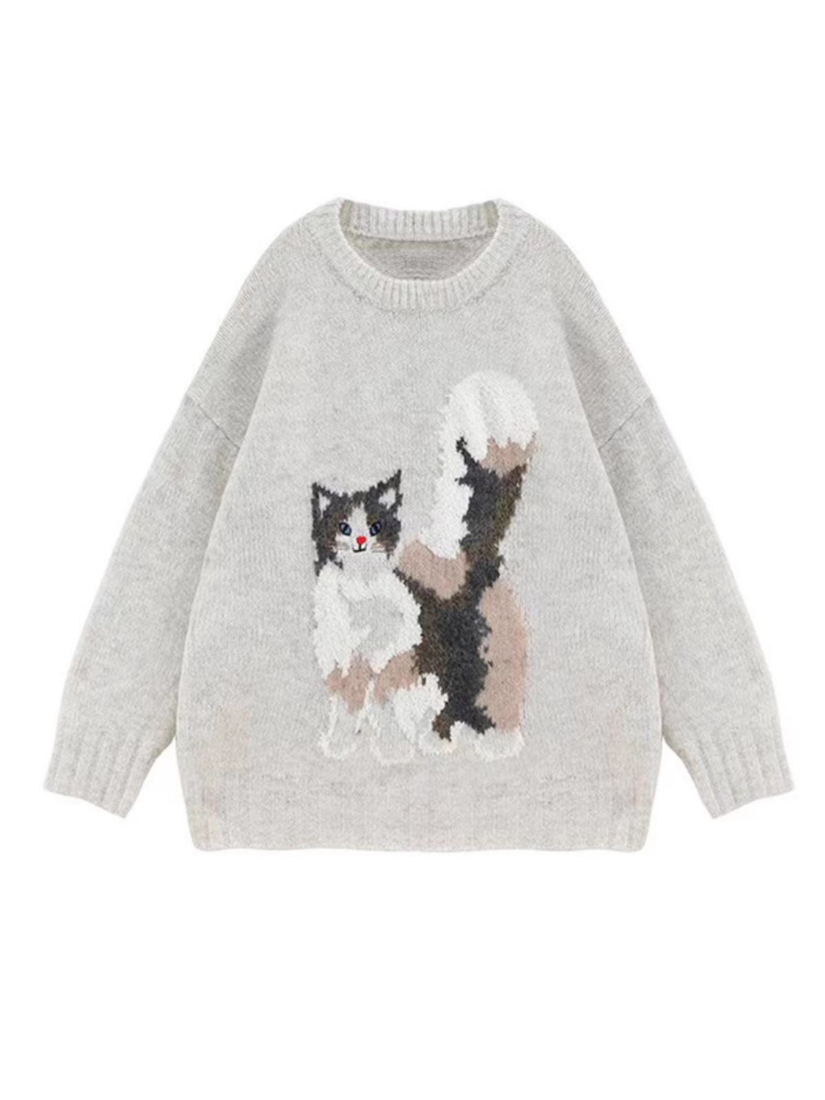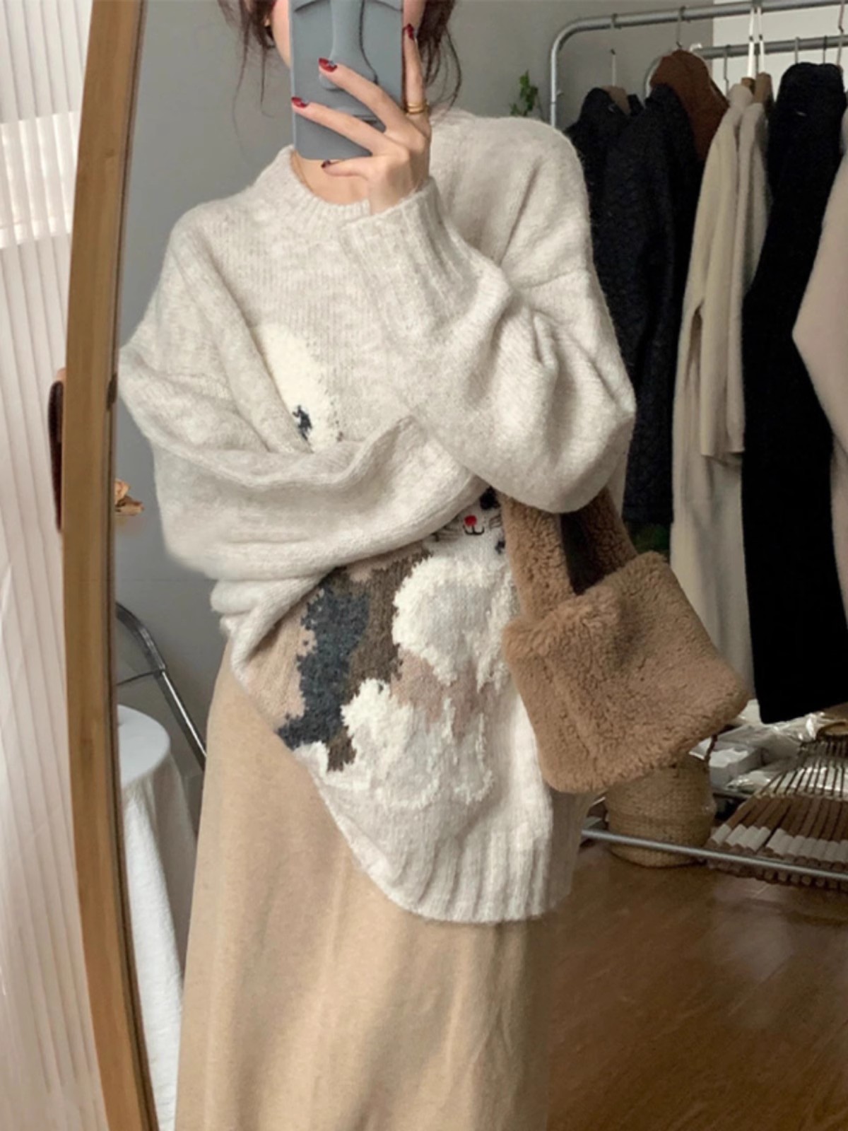 국경 간 일본 레트로 게으른 스타일 부드러운 왁스 풀오버 스웨터 여성의 2024 가을 및 겨울 새로운 트렌디 한 대외 무역 니트 셔츠 탑스토어 가기