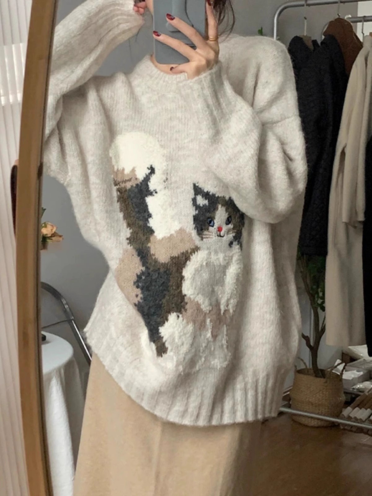국경 간 일본 레트로 게으른 스타일 부드러운 왁스 풀오버 스웨터 여성의 2024 가을 및 겨울 새로운 트렌디 한 대외 무역 니트 셔츠 탑