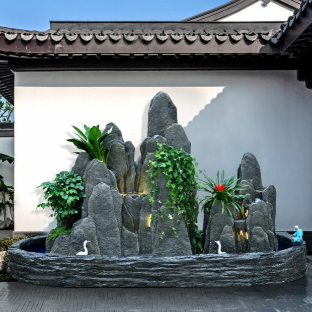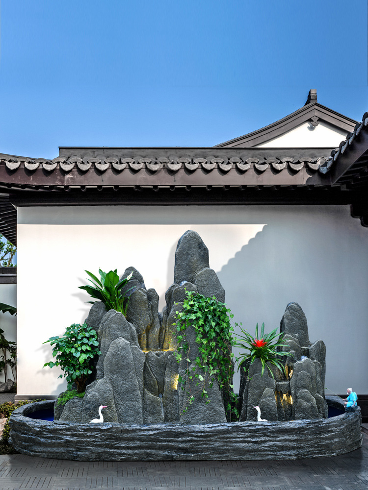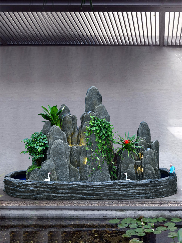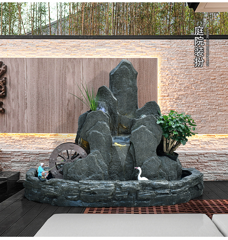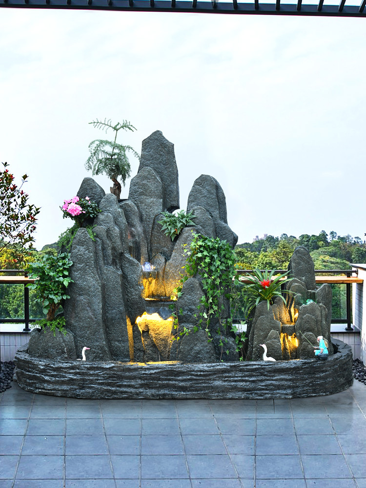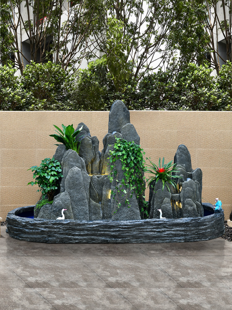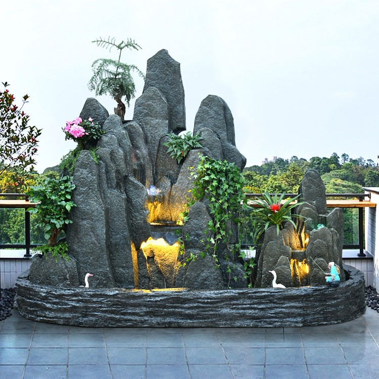대규모 바위 흐르는 물 분수 장식품 실내 거실 발코니 재산 장식 바닥 순환 풍경 물고기 연못 조경