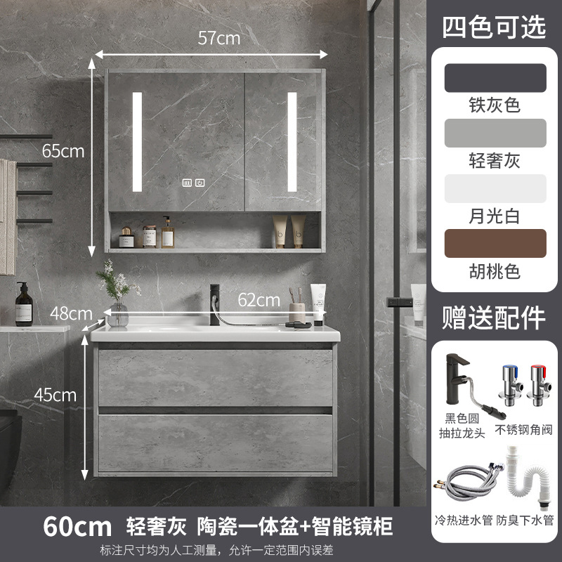 • 라이트 럭셔리 그레이 60CM 스마트 거울 캐비닛 + 액세서리 풀 세트 + 택배