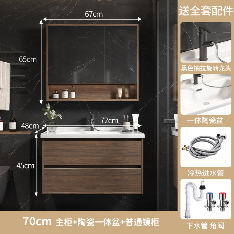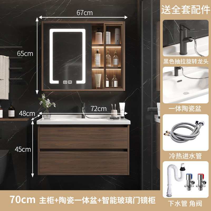 • 월넛 컬러 70CM 스마트 거울 캐비닛 + 액세서리 풀 세트 + 집으로 배송