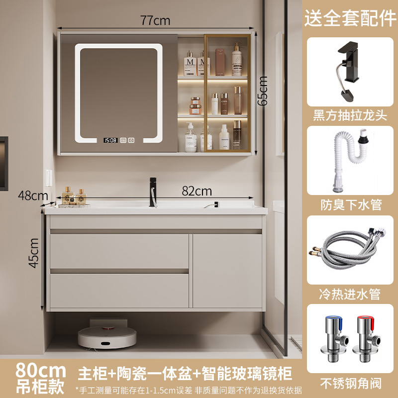 • 크림색 80CM 스마트 거울 캐비닛 + 액세서리 풀 세트 + 택배