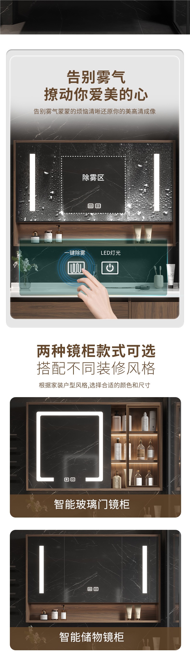 • 월넛 컬러 80CM 유리 도어 스마트 거울 캐비닛 + 액세서리 풀 세트 + 택배