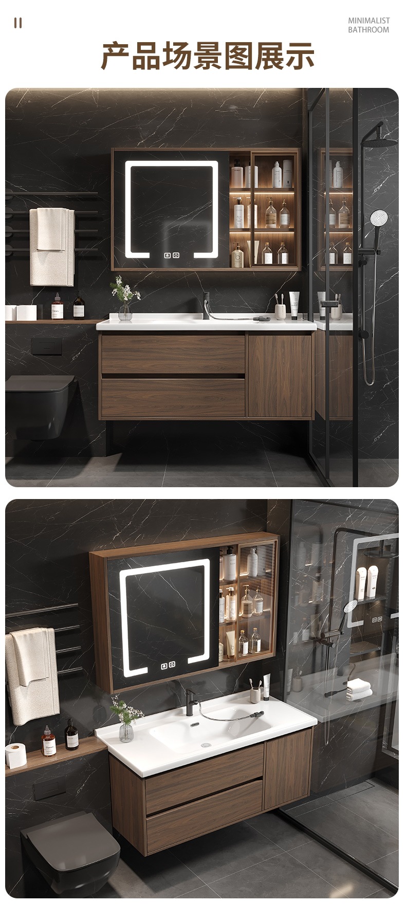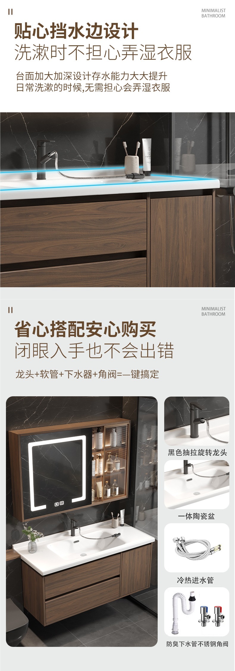 • 월넛 컬러 80CM 스마트 거울 캐비닛 + 액세서리 풀 세트 + 집으로 배송