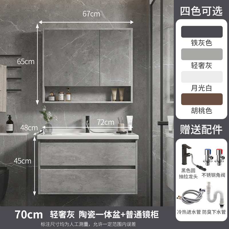 • 라이트 럭셔리 그레이 70CM 수납 거울 캐비닛 + 액세서리 풀 세트 + 택배