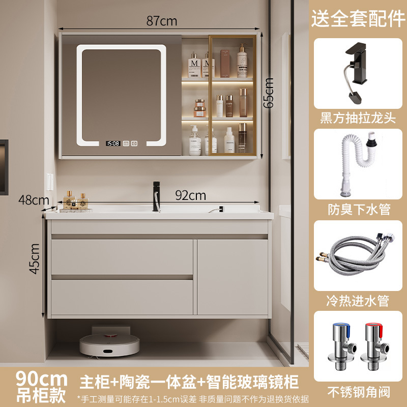 • 크림색 90CM 스마트 거울 캐비닛 + 액세서리 풀 세트 + 택배