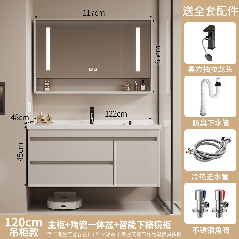 • 라이트 럭셔리 그레이 120CM 스마트 거울 캐비닛 + 액세서리 풀 세트 + 택배
