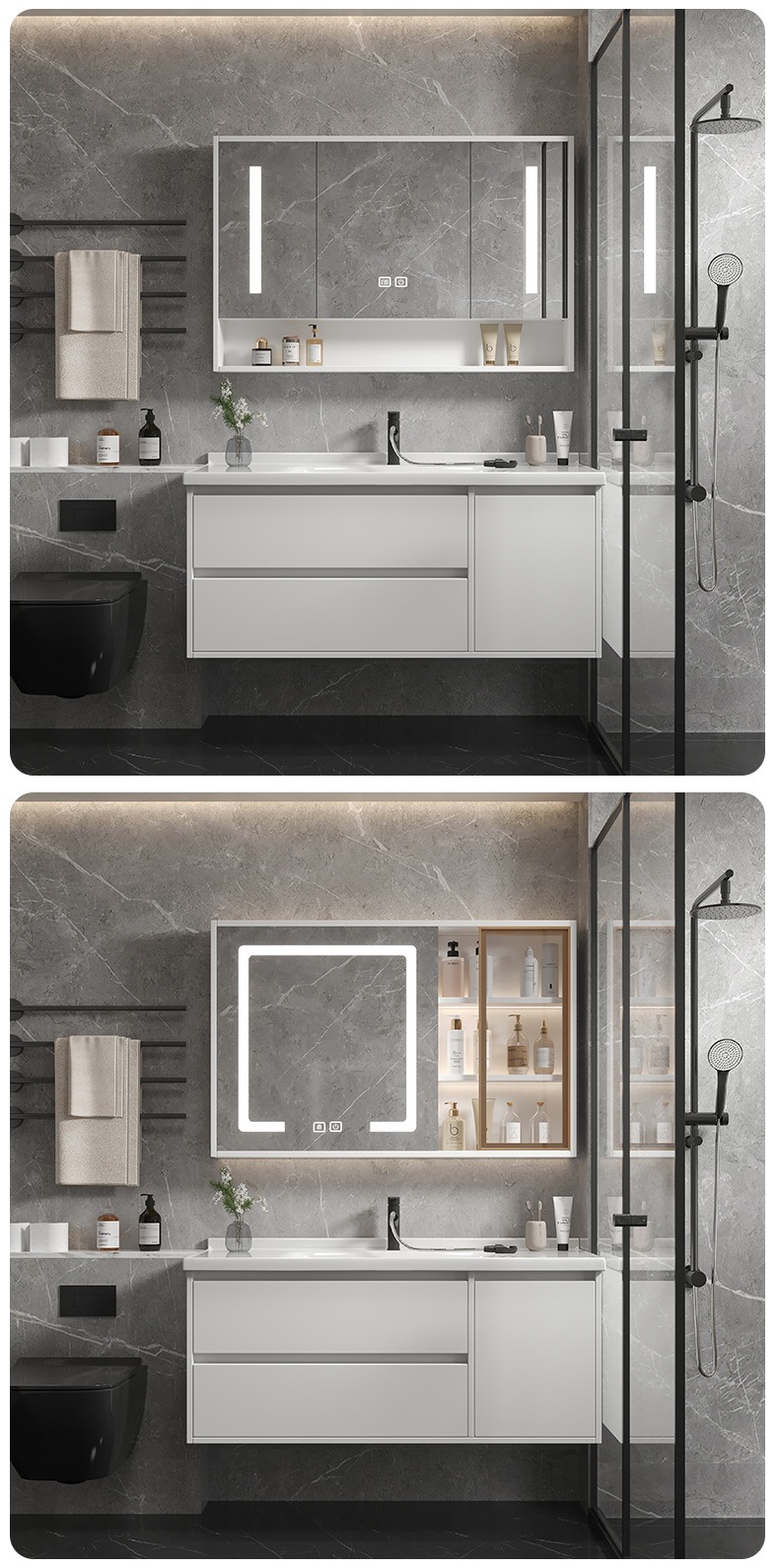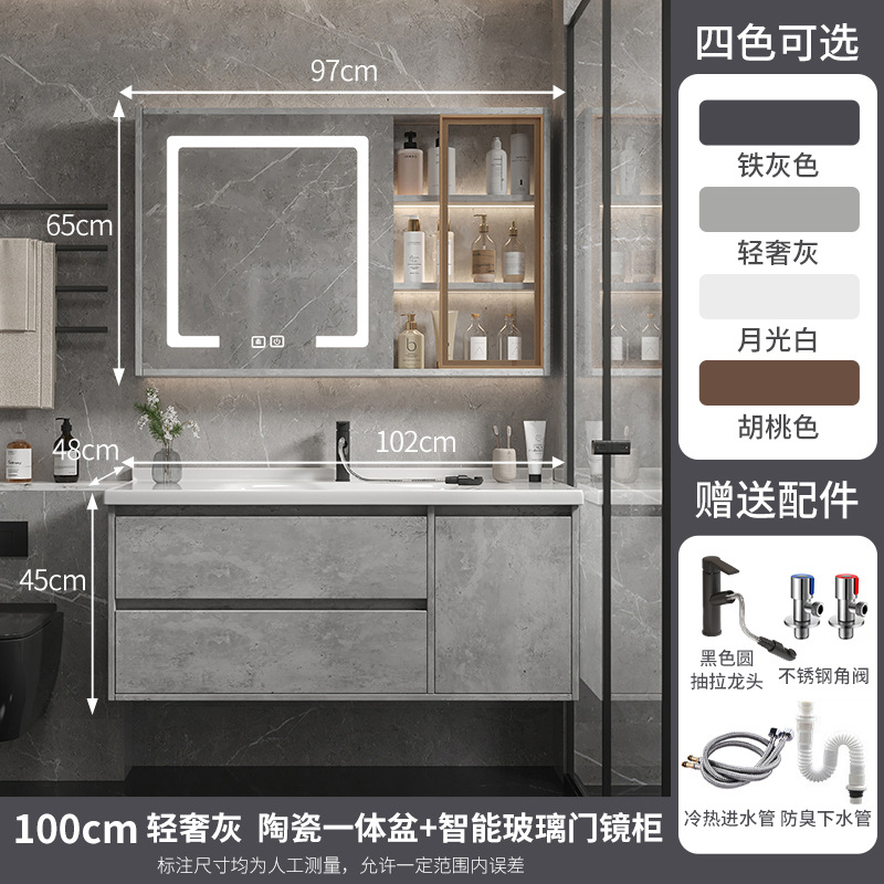 • 라이트 럭셔리 그레이 100CM 스마트 거울 캐비닛 + 액세서리 풀 세트 + 택배