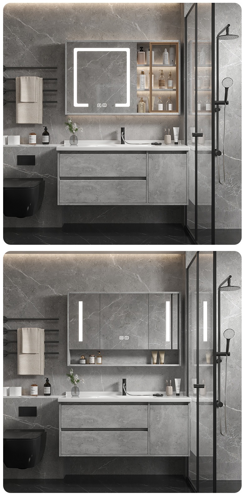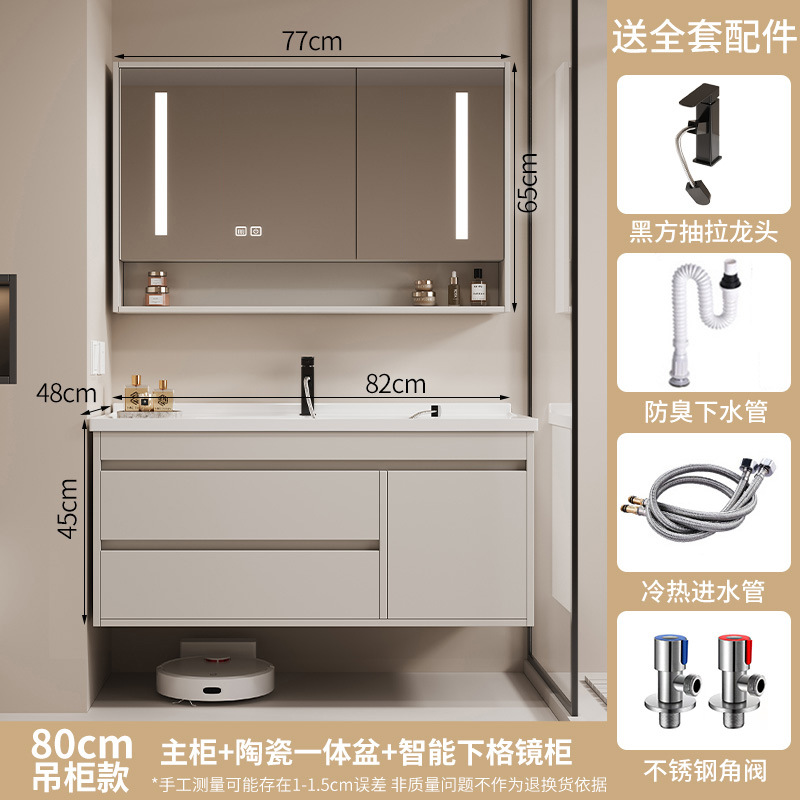 • 라이트 럭셔리 그레이 80CM 스마트 거울 캐비닛 + 액세서리 풀 세트 + 택배