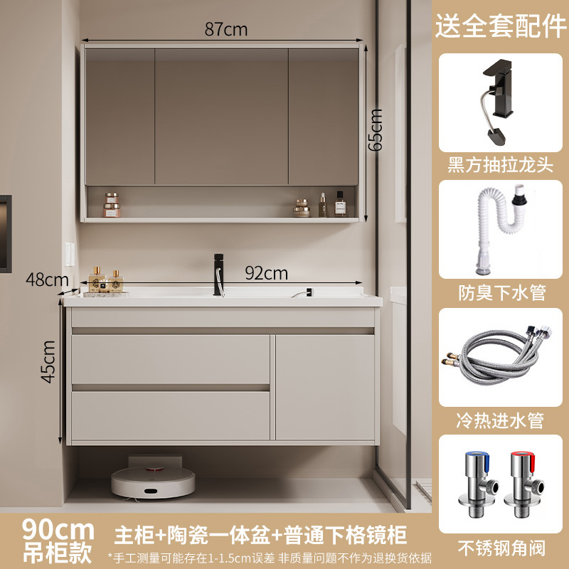 • 라이트 럭셔리 그레이 90CM 수납 거울 캐비닛 + 액세서리 풀 세트 + 택배