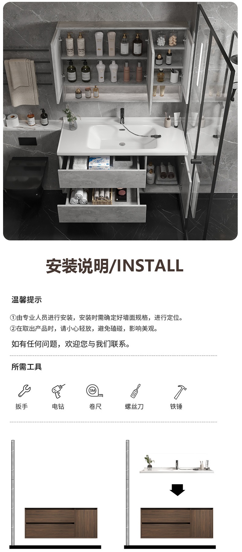 • 라이트 럭셔리 그레이 80CM 수납 거울 캐비닛 + 액세서리 풀 세트 + 택배