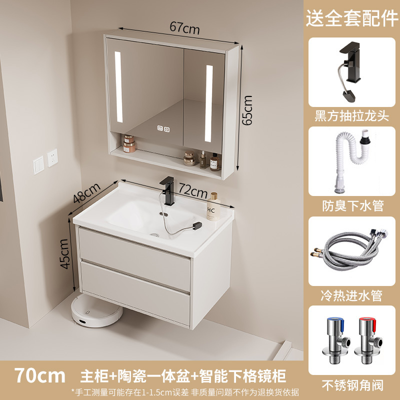 • 크림색 70CM 스마트 거울 캐비닛 + 액세서리 풀 세트 + 집으로 배송