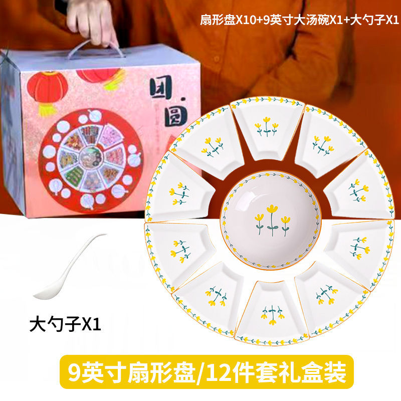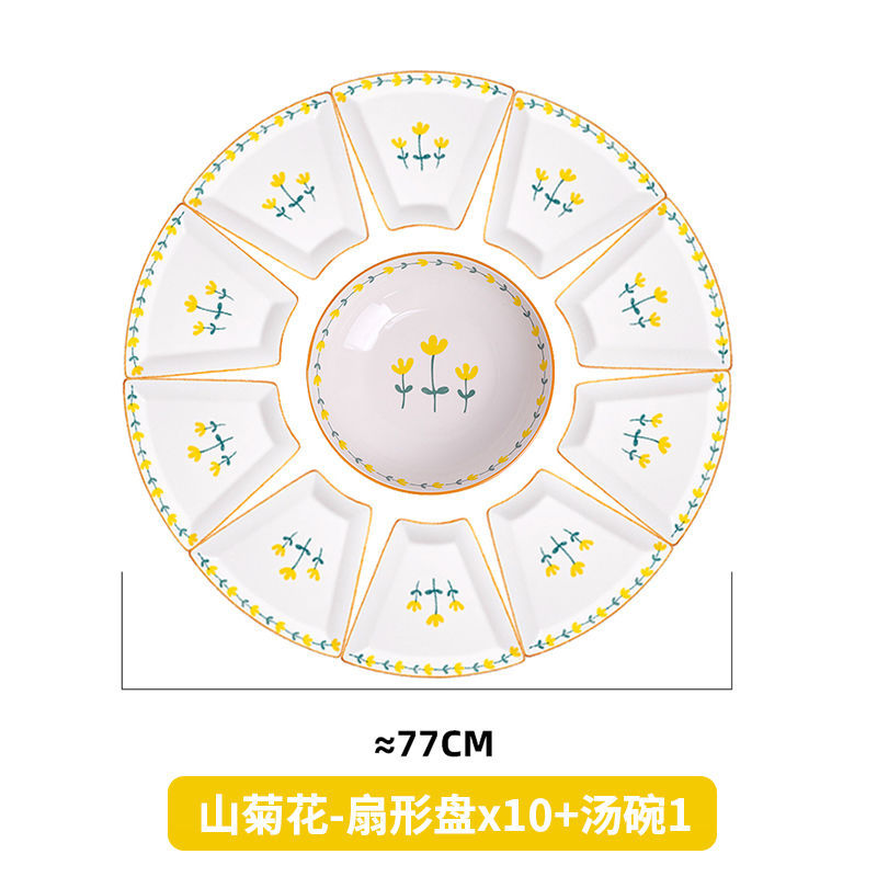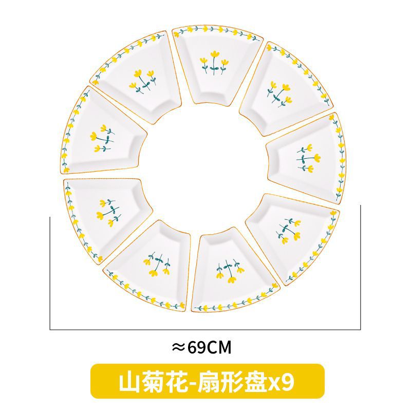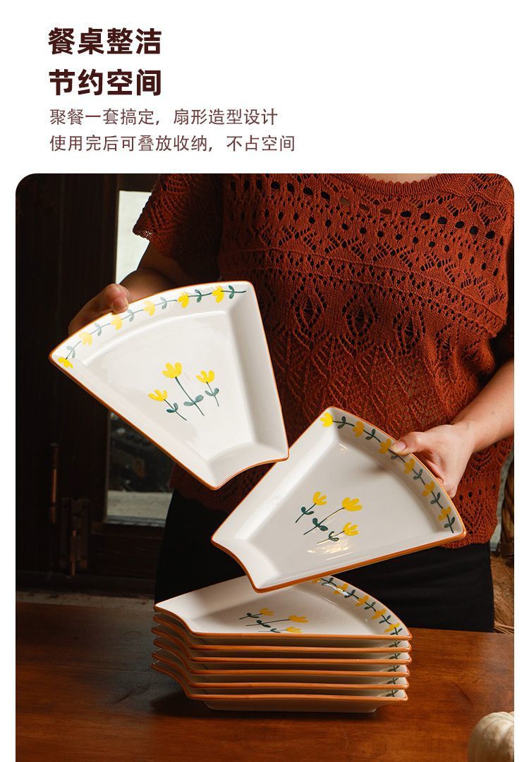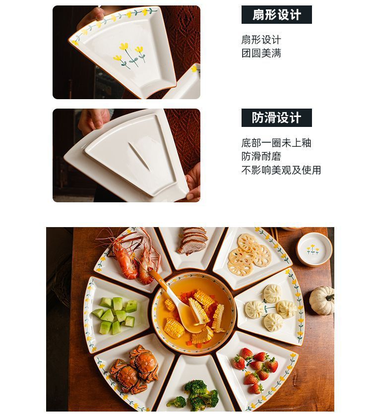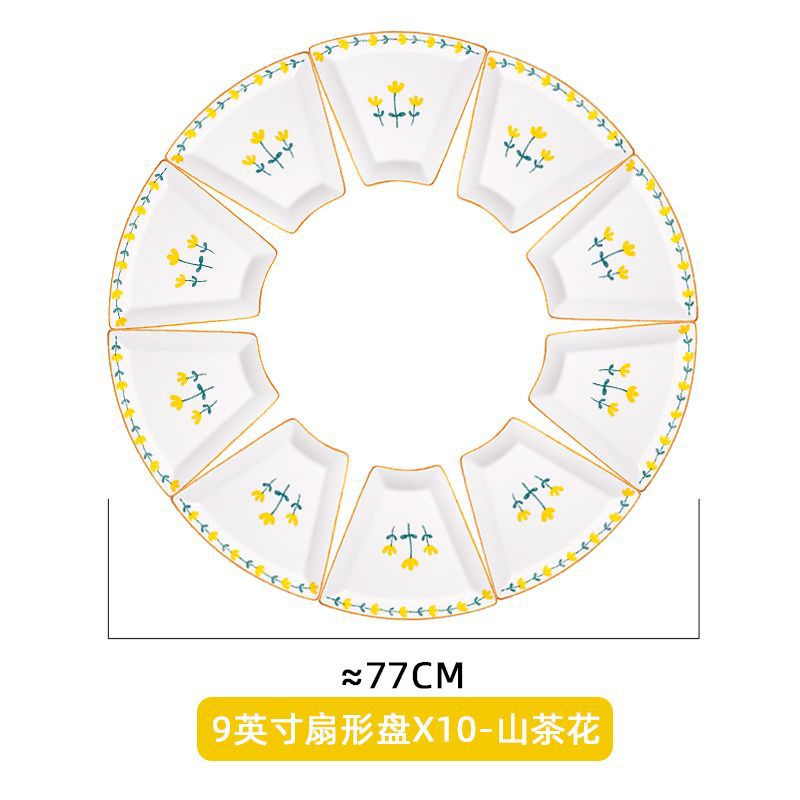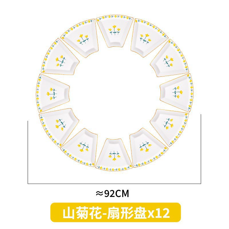 레위니옹 플래터 세트 홈 파티 호텔 연회 TikTok 인터넷 축하 팬 모양의 플래터 세라믹 플레이트 세트 조합스토어 가기