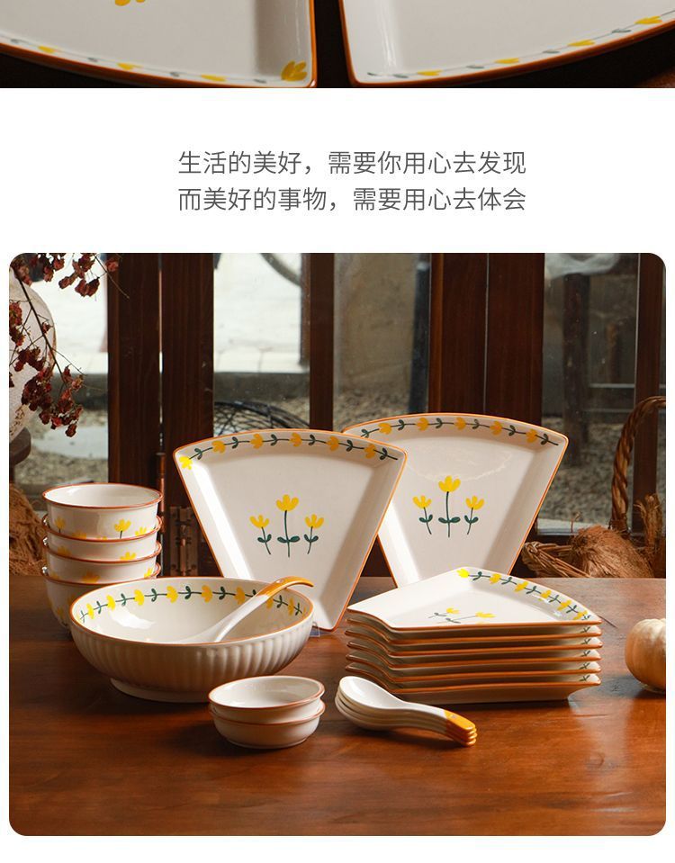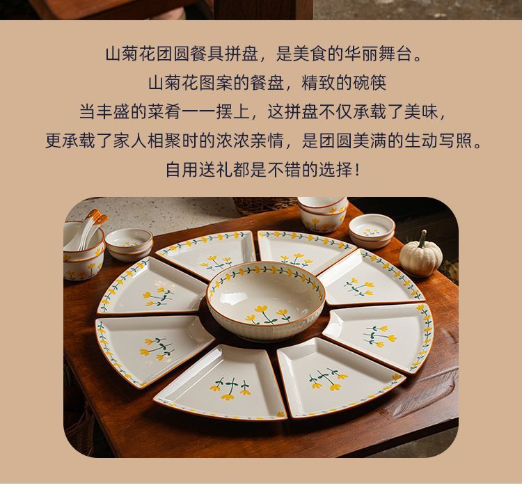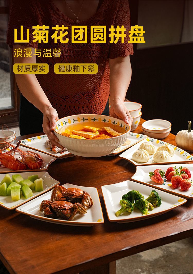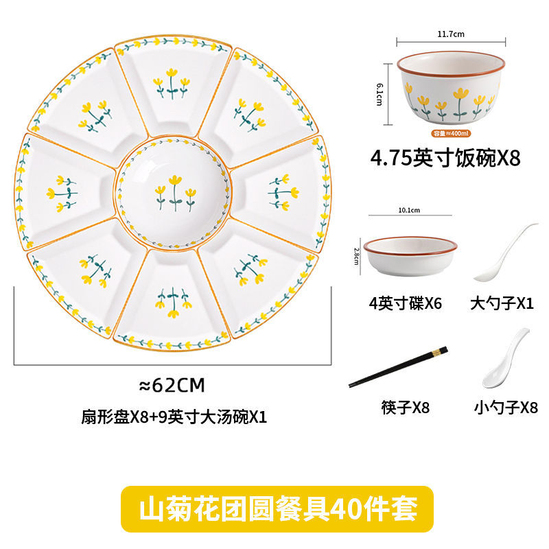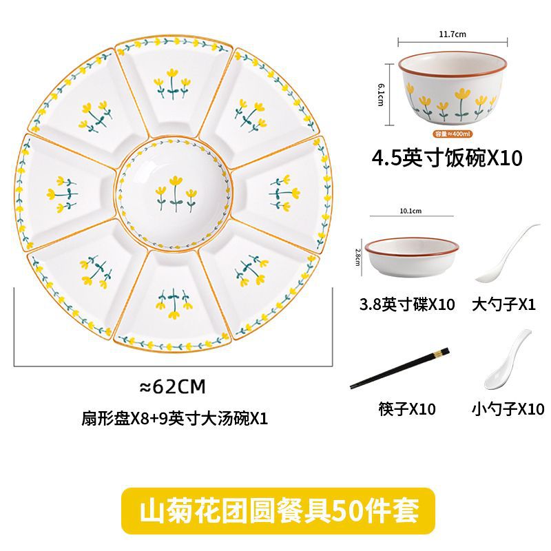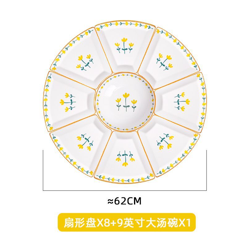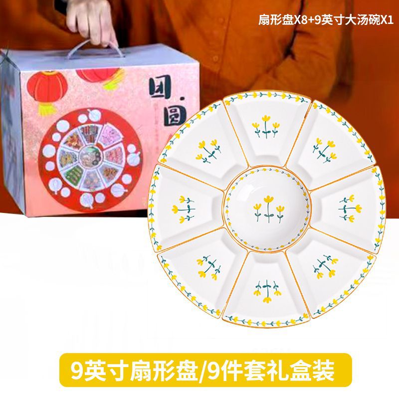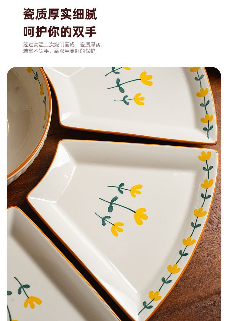레위니옹 플래터 세트 홈 파티 호텔 연회 TikTok 인터넷 축하 팬 모양의 플래터 세라믹 플레이트 세트 조합스토어 가기