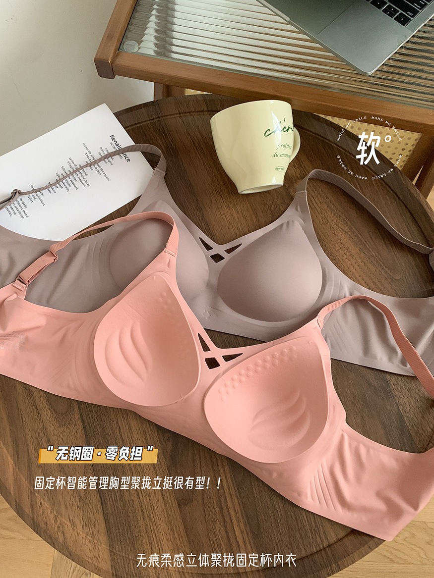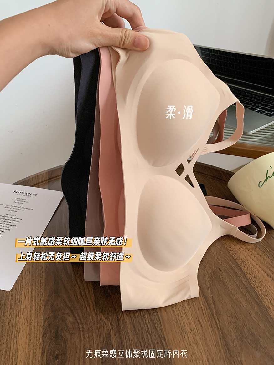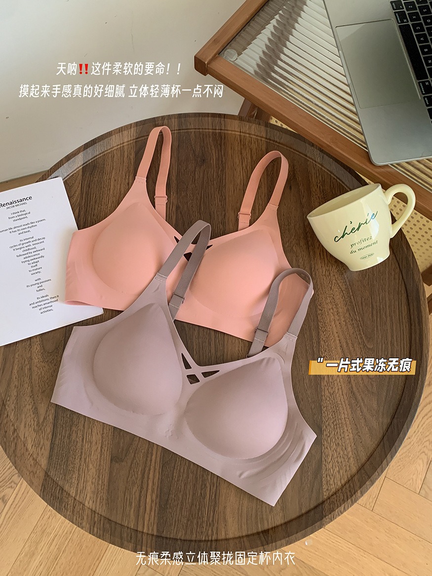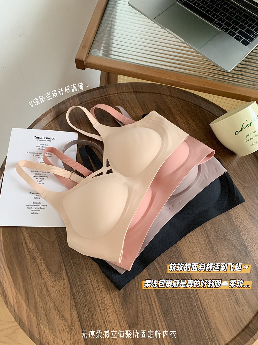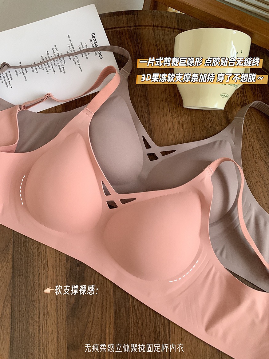 5839 # 소프트 지원 젤리 알몸 원활한 속옷 여성의 작은 가슴 위쪽 지지대는 처짐 방지 고정 컵 브래지어를 모았습니다.스토어 가기