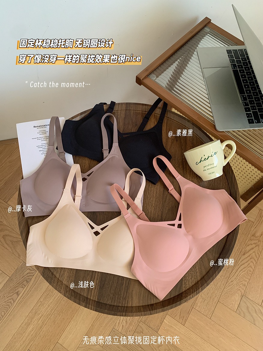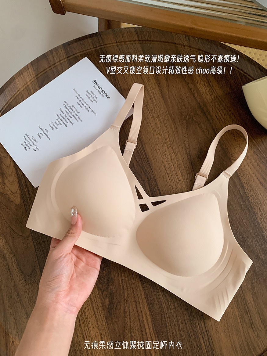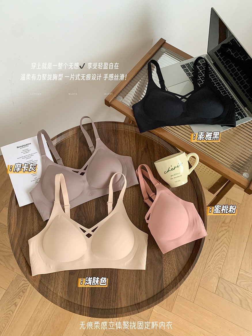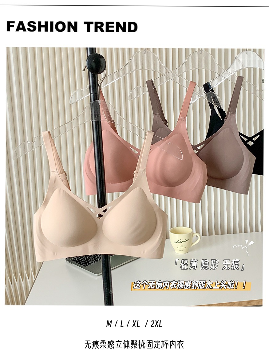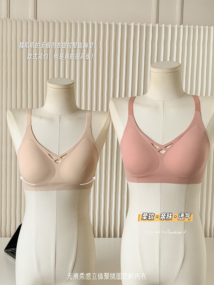 5839 # 소프트 지원 젤리 알몸 원활한 속옷 여성의 작은 가슴 위쪽 지지대는 처짐 방지 고정 컵 브래지어를 모았습니다.스토어 가기
