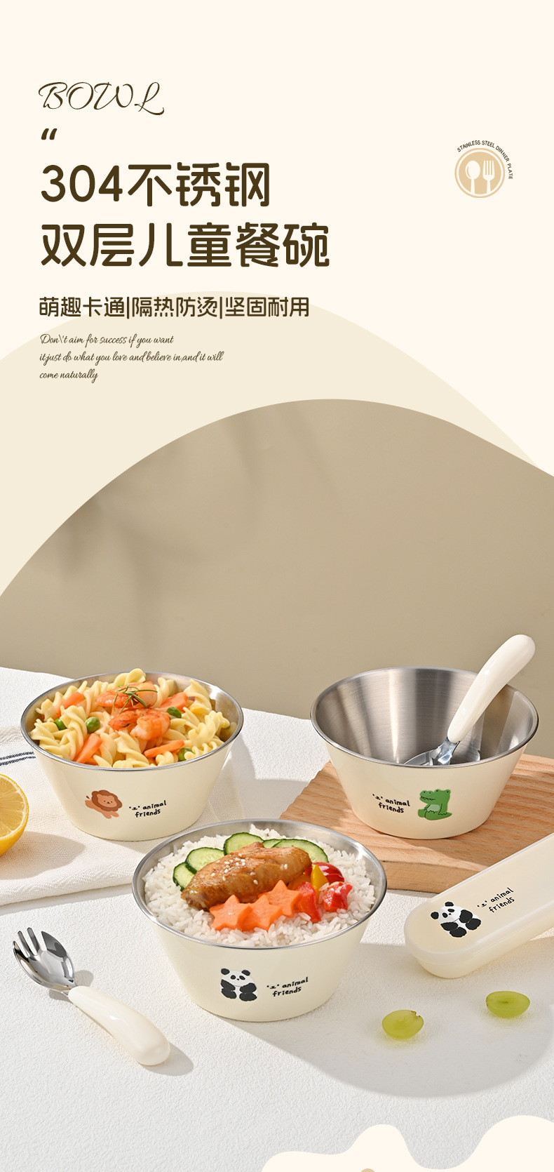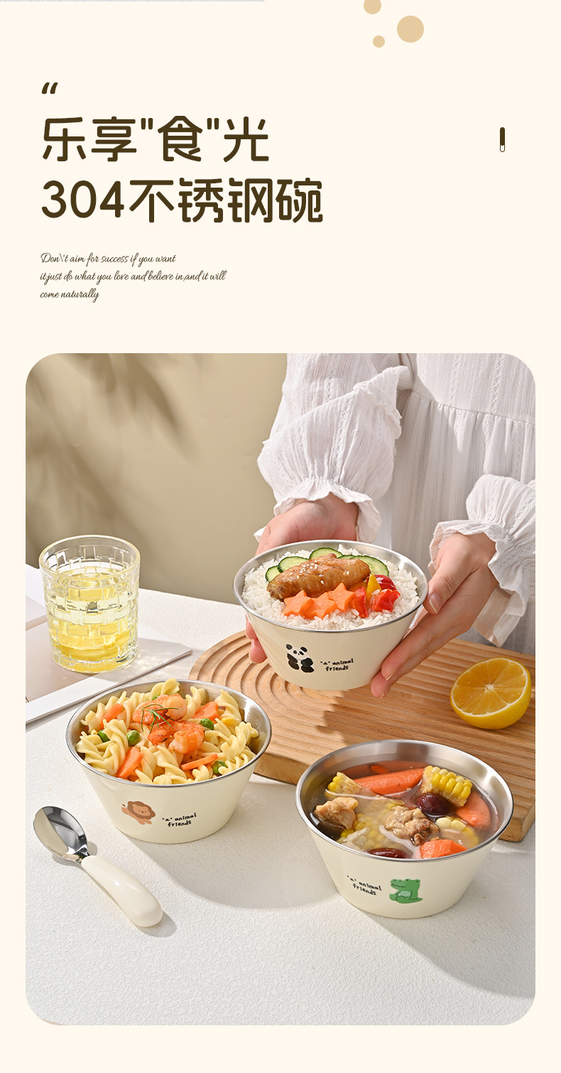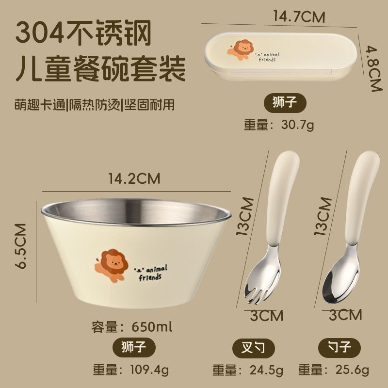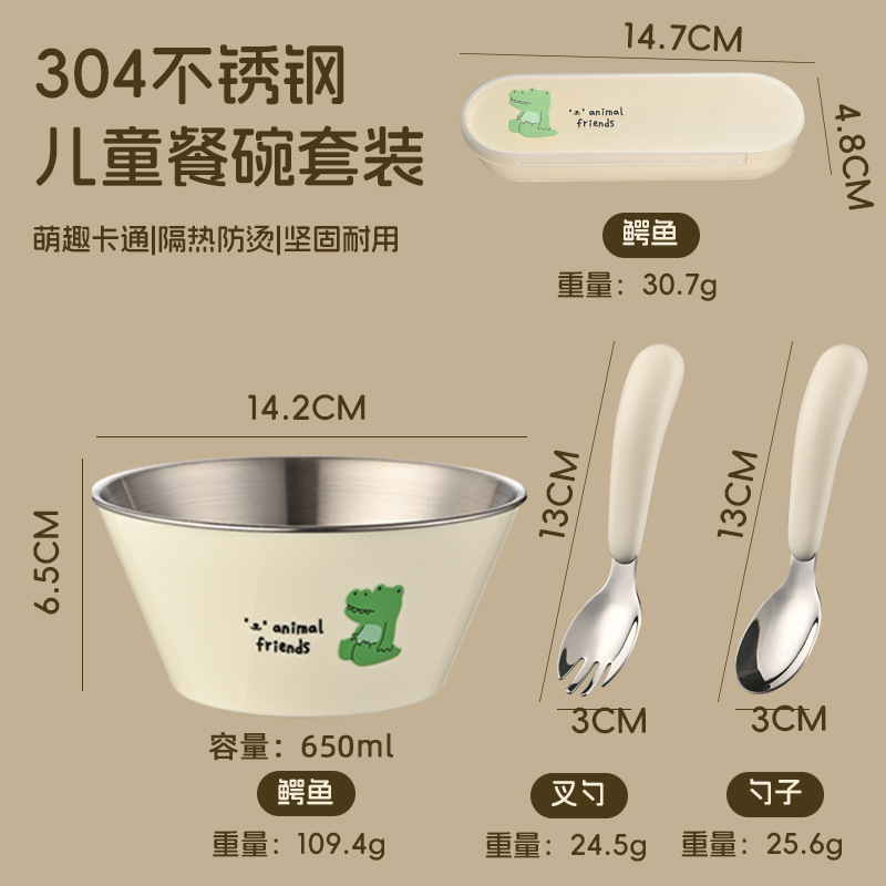 304 스테인레스 스틸 그릇 어린이 그릇 숟가락 세트 어린이 식기 만화 식사 그릇 더블 레이어 화상 방지 베이비 푸드 그릇